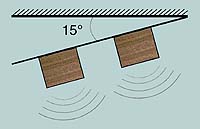 7. Если сможете, поставьте колонки так, чтобы линия, соединяющая их фронтальные панели, составляла 15 град. с одной из стен. Это реально помогает устранить комнатные резонансы, если бас чересчур напорист. Таким образом, обе колонки будут размещаться в комнате прослушивания несимметрично. При симметричной установке обе АС вызывают возникновение одной и той же моды. Каждая колонка возбуждает в комнате собственную резонансную частоту (т.е. моду), зависящую от расстояния до ближайшей стены. Дистанция между колонками и потолком дает вторую частотную доминанту. При абсолютно симметричном расположении АС в комнате резонансные эффекты удваиваются, что приводит к изломам АЧХ на частотах, выше доминирующих. Чтобы нарушить эту структуру, советую поставить колонки так, как показано на рисунке. Проблема с окраской звучания будет решена на 99%. Если не поможет, попробуйте 20 градусов. Способ дает отличные результаты и на Hi-Fi Show в отелях, где не слишком смышленые демонстраторы любят все ставить симметрично. Именно так, как делать нельзя.