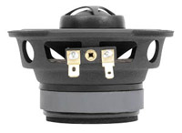 Коаксиальная акустика серии Tempo нам уже неплохо знакома, хотя бы по тесту прошлого номера. Её главная особенность — внешний кроссовер, включённый в разрыв провода. В кроссовере две катушки с железными сердечниками и плёночный конденсатор. Предусмотрена даже возможность аттенюации пищалки — с помощью джампера вы можете выбрать одно из двух положений 0/-3 дБ. Формула кроссовера в наших обычных обозначениях будет иметь вид I + II. Основной материал диффузора — целлюлоза, но верхний слой полимера, похожего на полипропилен, вероятнее всего, тоже вносит свой вклад в механические свойства диффузора. Корзина достаточно глухая. Магнит некрупный (65 х 12 мм), хотя и не самый мелкий в сегодняшней подборке. Уплотнительное кольцо в динамиках Morel низкое. Рамка решётки монтируется снизу и при необходимости может способствовать ослаблению требований к точности резки посадочных отверстий. Звукопоглощающее кольцо фетровое (кстати, поролон нам сегодня ни разу не попался и до конца дня уже не попадётся, поверьте). Клеммных контактов две пары, так что акустика Tempo предоставляет редкостную для коаксиалов возможность подключения по методу би-ампинга. Организация подвода сигнала к головкам, можно сказать, типичная: к мидбасу по первому способу, к пищалке — по второму. На центральной стойке установлен привычный твитер Morel — с мягким куполом диаметром 27 мм.
