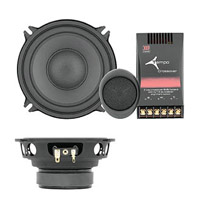 Мидбасы Morel прерывают победное шествие полипропилена, правда в их диффузорах целлюлоза тоже покрыта снаружи слоем полимера. Впрочем, такова наша реальность: бумага в чистом виде в автомобильном салоне не живёт или живёт недолго. А влияние всякого рода покрытий (это тоже реальность) можно свести к нулю или обернуть на пользу, если знать как. Центральный колпачок изготовлен из ткани с пропиткой, диаметр его 51 мм. Диффузородержатель имеет неповторимую форму и неплохо (но не более) заглушён. При диаметре магнита всего 74 мм размер осевого отверстия 10 мм — в выборе между минимизацией потерь потока и повышением эффективности отвода тепла авторы разработки остановились на последнем. Уплотнительного кольца на внешнем ободе корпуса не предусмотрено. Рамка решётки монтируется снизу, и посадочное отверстие под динамик должно быть выполнено точно по размеру корпуса. Провода к выводам звуковой катушки проложены по наиболее традиционному первому способу. Пищалка имеет типичный для «наших» ВЧ-излучателей размер шёлковой мембраны 28 мм. Расположенная перед ней традиционная трёхлучевая «звезда» с апертурой выполняет по большей части защитные функции. Поскольку овальных чашек не бывает, назовём соответствующий монтажный аксессуар держателем твитера, тем более что с его помощью пищалки заглубляются в «тело» лишь наполовину. Для этих держателей предусмотрено две пары подставок: более высокие с разворотом оси излучения на 35 градусов и пониже с углом разворота 20 градусов. По традиции схема кроссовера отличается крайним минимализмом: здесь одна катушка с сердечником из феррита и один майларовый конденсатор (формулу кроссовера желающие могут составить сами). Есть ещё джампер на два положения: +3/0 дБ.