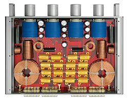 Кроссовер, точнее - «кроссблок», собран в массивном корпусе из тринадцатого элемента таблицы Менделеева, это алюминий, вы, надеюсь, поняли, но внутри - целое месторождение меди, для правильного представления о размерах катушек (все - с воздушным сердечником) вспомните габариты корпуса, который не удастся полностью накрыть страницей журнала. Круглые синие цилиндры - переключатели, коммутирующие элементы фильтров с целью изменения их характеристик. «Кроссблоки» для двух- и трёхполосных элементов «периодической системы» Utopia Be, разумеется, разные. Общее - возможность подключиться к раздельным каналам усиления (НЧ-ВЧ для двухполосных Kit №5 и Kit №6 или же НЧ-СЧ/ВЧ для Kit №7). Разница - в схеме фильтров, что естественно, и в логике регулировок.
