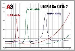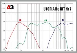 В таблице имени Дмитрия Ивановича, кто помнит, есть строка под названием «актиноиды». Это где уран, плутоний и другие предметы мечтаний стран оси зла. Группа актиноидов предусмотрена и в периодической таблице Utopia Be. Это -варианты систем Kit №5, 6 и 7 с приставкой Active. Смысл очевиден: те же головки, но без кроссоверов, для систем с полностью поканальным усилением и активной фильтрацией. В этом случае обширный кроссблок заменяется маленькой таблицей, где сообщаются предельно допустимые (вернее - предельные рекомендуемые) частотные границы работы компонентов. Для справки и любопытства: минимальная частота среза ФВЧ твитера приведена как 2,5 кГц, среднечастотник 3W2 Be можно запускать от 150 Гц (нормально, да?) до 6 кГц, мидбасы снизу рекомендуется резать на 70 (для 6W2 Be) или 60 (6W3 Be) Гц.