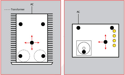 Первый конус размещается под силовым трансформатором, остальные - под выходными каскадами, так, чтобы компонент был сбалансирован. Если в конструкции усилителя использовано два силовых трансформатора, один Sort Kone следует установить между ними либо разместить по конусу под каждый из трансформаторов, а третьим сбалансировать конструкцию. Для ламповых усилителей рекомендуется размещение как минимум одного конуса под лампами выходного каскада.