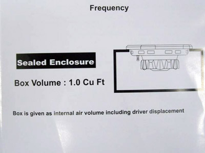 Итак, инженеры компании BOSS Audio Systems предложили для данного громкоговорителя закрытый ящик объемом один кубический фут (или 28.3 литра). По всей видимости, BOSS’овцы преследовали цель получить максимально возможное давление в области 80 – 90 Гц (панч, прямая бочка) с минимально возможным объемом корпуса, при этом смирившись с падением звукового давления ниже 50 Гц.