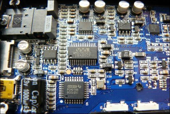 В качестве микросхемы-контроллера USB используется TI PCM2706, в сочетании с DAC Wolfson WM8740 это позволяет использовать Fiio E7 как высококачественную внешнюю звуковую карту, усилительная часть выполнена на паре микросхем Texas Instruments TPA6130A и AD8692. Применение качественных комплектующих от известных производителей говорит само за себя, при подключении к PC или MAC, устройство распознаётся, как стандартное AUDIO USB и не требует установки дополнительных драйверов.