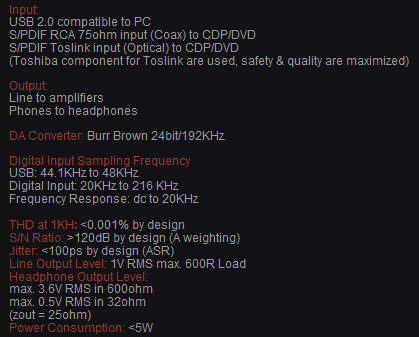 Чем же хорош ЦАП LeadAudio LA-100? Подключение к компьютеру (Windows, MacOS, Linux) происходит без проблем, всё работает со штатными драйверами соответствующей системы, устройство определяется как standardaudiodevice. Характеристики DAC-a для данной ценовой категории и сферы применения очень высоки, это, без шуток, доступный путь в Hi-End, достаточно только внимательно взглянуть на некоторые характеристики.