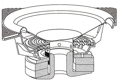Изложенная в предыдущей части задача магнитной цепи — создать высоколинейное и мощное магнитное поле в воздушном зазоре, в котором перемещается звуковая катушка, — возложена не только на магнит, а на весь магнитопровод: магнит (магнитомягкий материал), задний и передний фланцы плюс керн (магнитотвердые материалы). Да что там, геометрия воздушного зазора и воздух в нем могут как помочь, так и навредить, причем в такой степени, что никакой магнит не исправит положения. Ведь вместо воздуха в зазоре может быть специальная магнитопроводящая среда, например ферромагнитная жидкость. Но об этом позже.