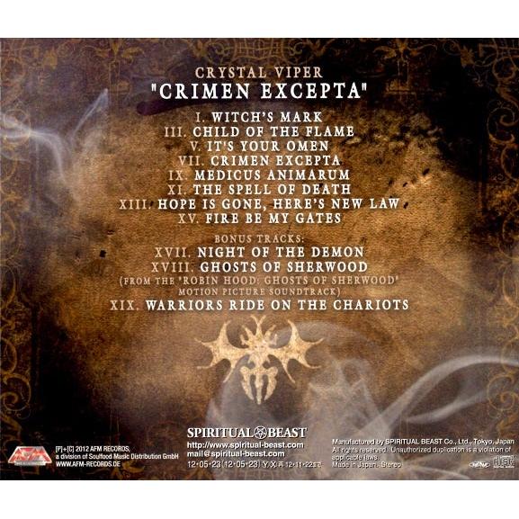 Описание CD-диска CRYSTAL VIPER - CRIMEN EXCEPTA (JAPAN REISSUE)