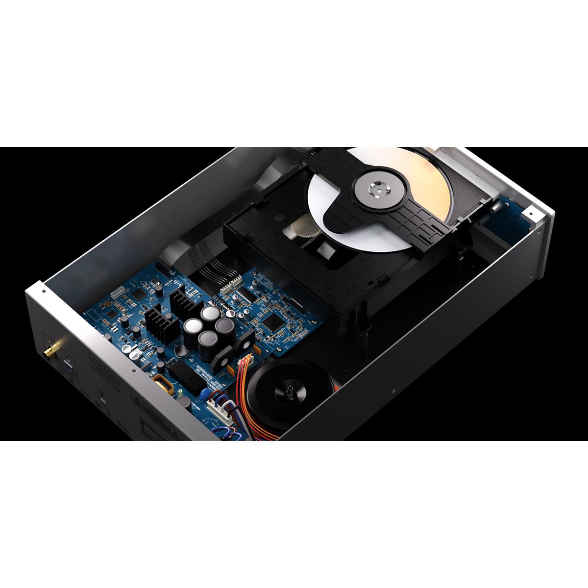 В модели используется высококлассный CD-механизм с прецизионной оптической системой считывания, обеспечивающий точную обработку данных с дисков CD, CD-R, CD-RW и Data CD. OLED-дисплей поддерживает отображение CD-Text и предоставляет удобную навигацию по трекам. Полнофункциональный пульт дистанционного управления позволяет управлять всеми режимами воспроизведения.