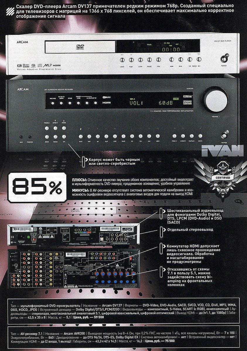 Arcam DV137, Arcam AVR350. С английским акцентом. Журнал "IVAN"