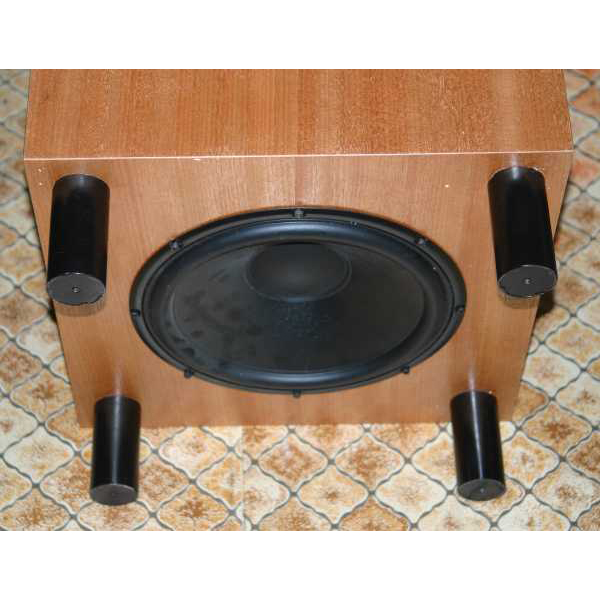 Это сабвуфер для моего сына, работает с четырьмя минимонитрами.Мой сын использует 4 моих минимонитора в системе домашнего кинотеатра. Поэтому, ему понадобился сабвуфер. Есть недорогая "двенашка" Пирлес 830669, которая имеет приличный линейный ход 8мм. Ей требуется не менее 70 литров, а лучше 100-110, имея при этом 40 герц по минус 3дБ. Естественно, что в комнате такой саб не поставишь.