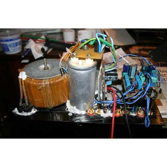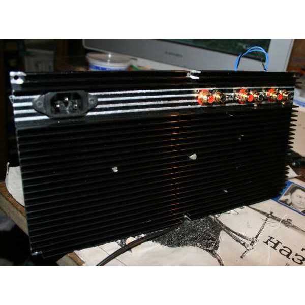 Фильтр для сателлитов собран на А2. А3 - складывает сигналы правого и левого каналов. Второй вход P5 нефильтрованный моно, для сигнала с ресивера. Переключение частот среза осуществляется перемычками. Я не стал делать плавную регулировку частоты среза. Далее сигнал идет на переключатель входов S1. На А4.1 собран фильтр НЧ второго порядка, на А4.2 - регулятор уровня. Диапазон регулировки оказался маловат. На А5.1 собран корректор Линквитца, а на А5.2 - ивертирующий усилитель для переключения фазы. Я не стал делать плавную регулировку фазы, достаточно дискретного преключения на 180 градусов. Я использовал распространенные и дешевые NE5534 - 5532. Удачно разведенная плата и скомпонованный блок обеспечили полное отсутствие фона, чем грешат все промышленные усилители. Усилитель мощности собран на двух TDA7293 впараллель - по схеме master-slave. В блоке питания стоият ставрые советские банки К50-37 по 15000 мкФ, плюс на плате усилителя по 2000 мкф в плече. Напряжение питания на холостом ходу получилось плюс-минус 39 вольт. Этого вполне хватает для обычной квартиры.