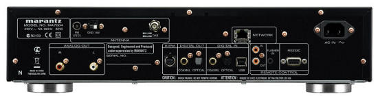 Коммутационные возможности Marantz NA7004 весьма впечатляют. В первую очередь, это сетевое устройство, работающее по стандарту DLNA 1.5, и способное читать совместимый контент с NAS и ПК. Можно принимать интернет-радио, а, если обновить прошивку, появится и очень удобная функция AirPlay для беспроводной связи с гаджетами на базе ОС iOS и Android.