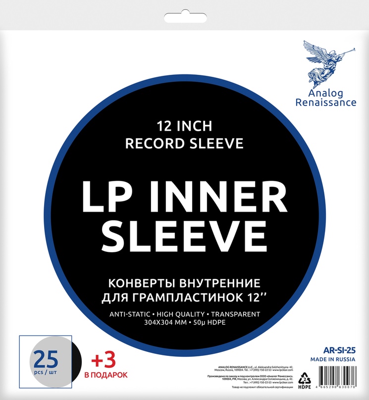 Пока пластинка хранится на полке и ждёт своего покупателя в запечатанном виде (полиэтилен), с ней ничего не происходит. Но стоит её вскрыть, как в конверт попадают пыль и другие загрязнения. Однако существует простой способ сохранить вашу коллекцию при помощи внешних (для обложек) и внутренних (для пластинки) конвертов от российского производителя Analog Renaissance.