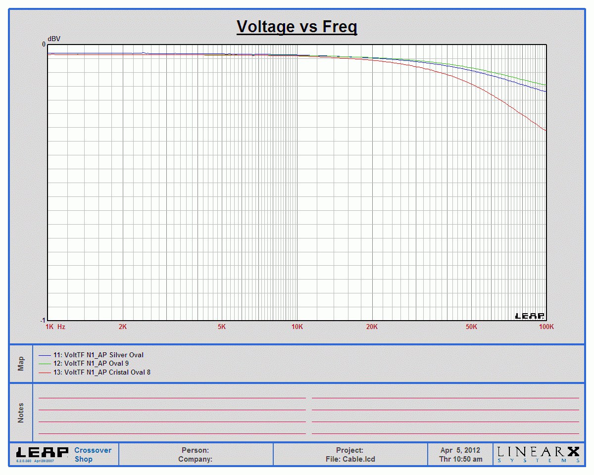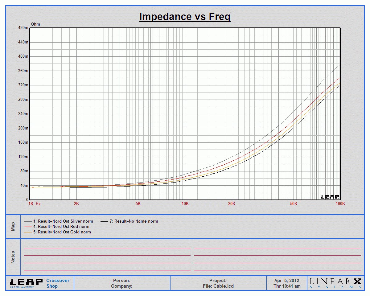 Если взять за основу постулат для проектирования АС и комплексной нагрузки для усилителей мощности, то можно сделать вывод, что импеданс кабеля, который ближе всего сравним с горизонтальной линией, наиболее предпочтителен для работы усилителя мощности и меньше влияет на работу пассивного кроссовера АС.
