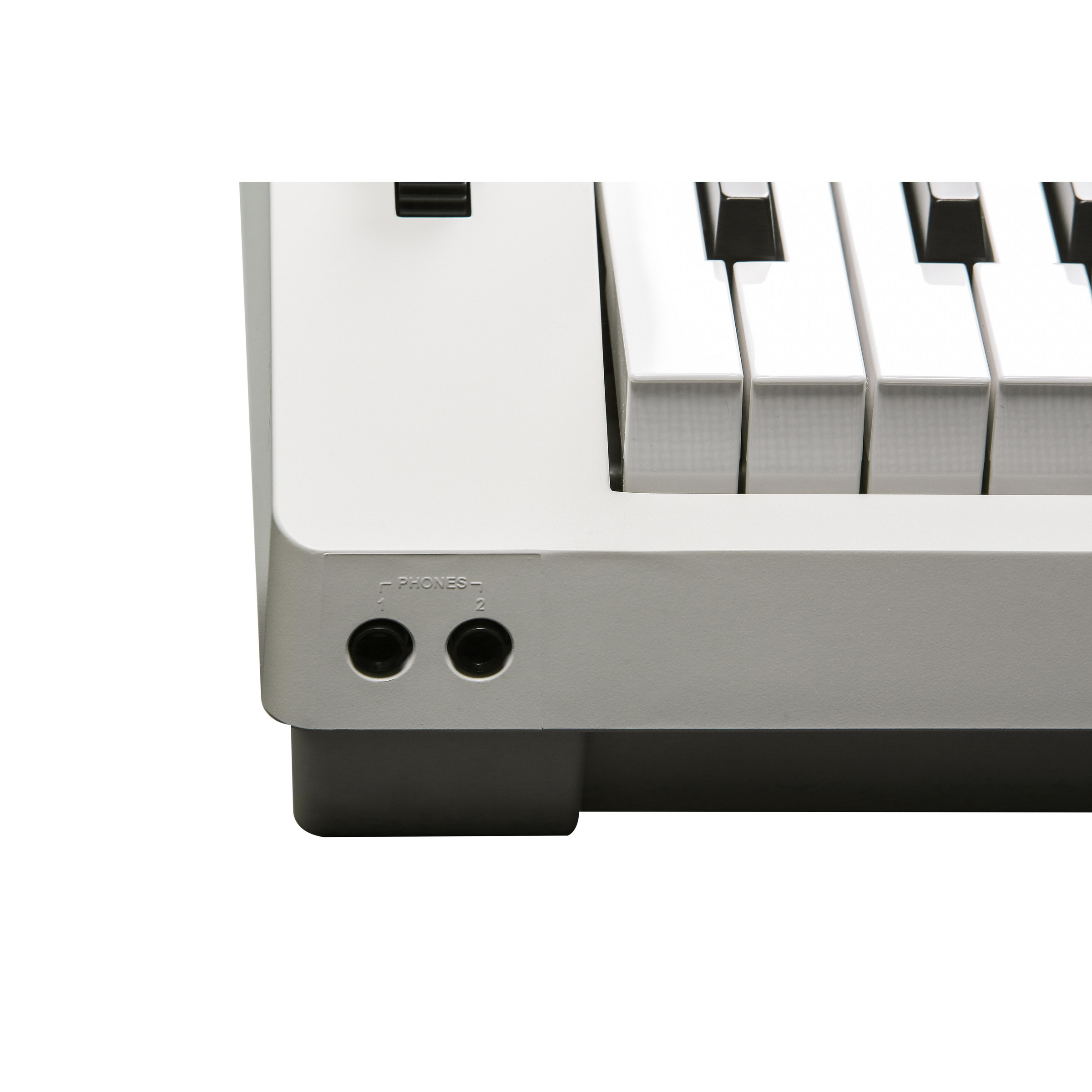 Все кнопки для управления функционалом, а также ЖК-дисплей для отображения значений располагаются на лицевой панели. Слева от клавиатуры располагается колесо для изменения высоты тона. Для подключения внешнего источника звука и вывода аудиосигнала есть линейные вход и выход на разъемах 1/4'' Jack TRS. Такими же разъемами представлены два выхода для наушников, а вход для комплектной педали сустейна использует разъем 1/4'' Jack TS. Для подключения к ПК и передачи MIDI-данных есть порт USB-B, а для связи с внешним оборудованием имеется MIDI-выход на 5-контактном коннекторе DIN.
