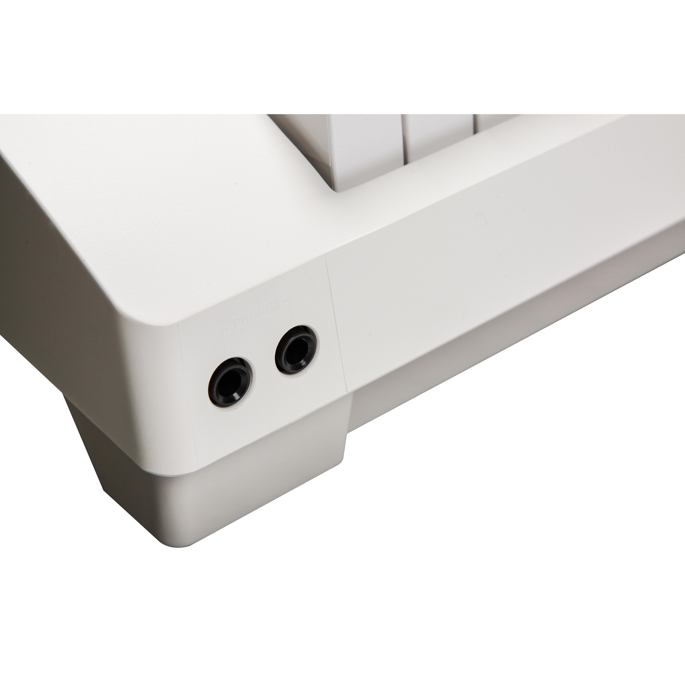 Инструмент позволяет подключить опциональный 3-педальный блок, для которого в наличии есть отдельный вход. Встроенная акустическая система оснащена двумя парами динамиков, которые в сумме обеспечивают 60 Вт выходной мощности. Энергообеспечение осуществляется от адаптера на 12 V DC. Для экономии энергии имеется режим автоматического выключения после 30 минут простоя. Адаптер питания и пюпитр поставляются в комплекте.