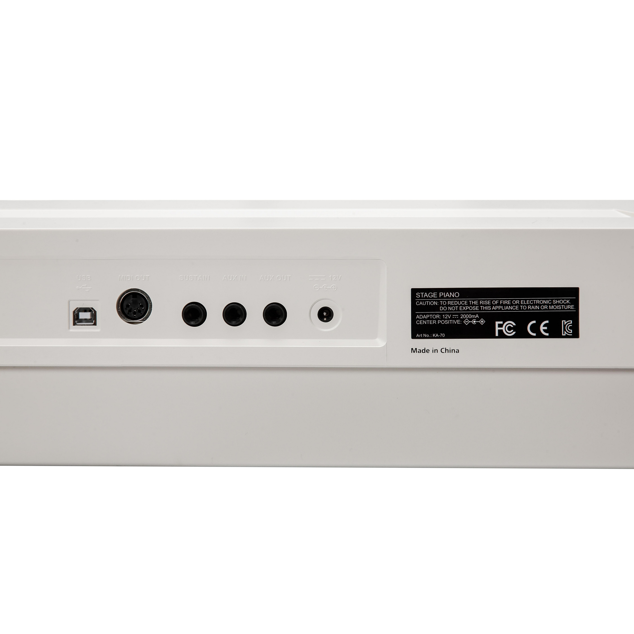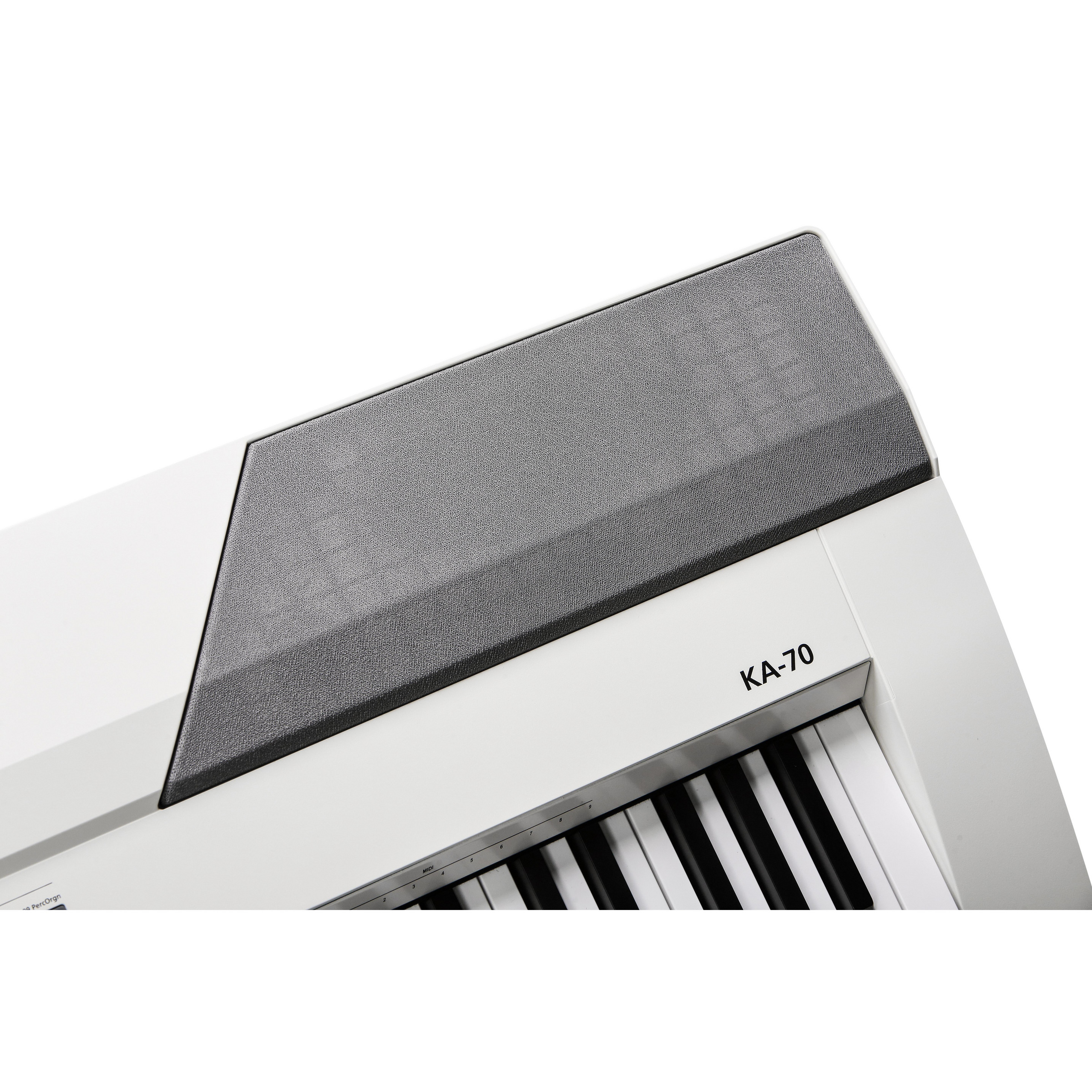 Kurzweil KA70 представляет собой компактное цифровое пианино, которое отличается легким весом, удобным и простым управлением, а также наличием всех самых полезных функций. Данная модель имеет полувзвешенную 88-клавишную клавиатуру с 4-уровневой чувствительностью к силе нажатия, что обеспечивает возможность легкой транспортировки и доступную стоимость. Инструмент хорошо подойдет начинающим музыкантам для домашних занятий и практики, а также может использоваться и для работы на концертах или репетициях.