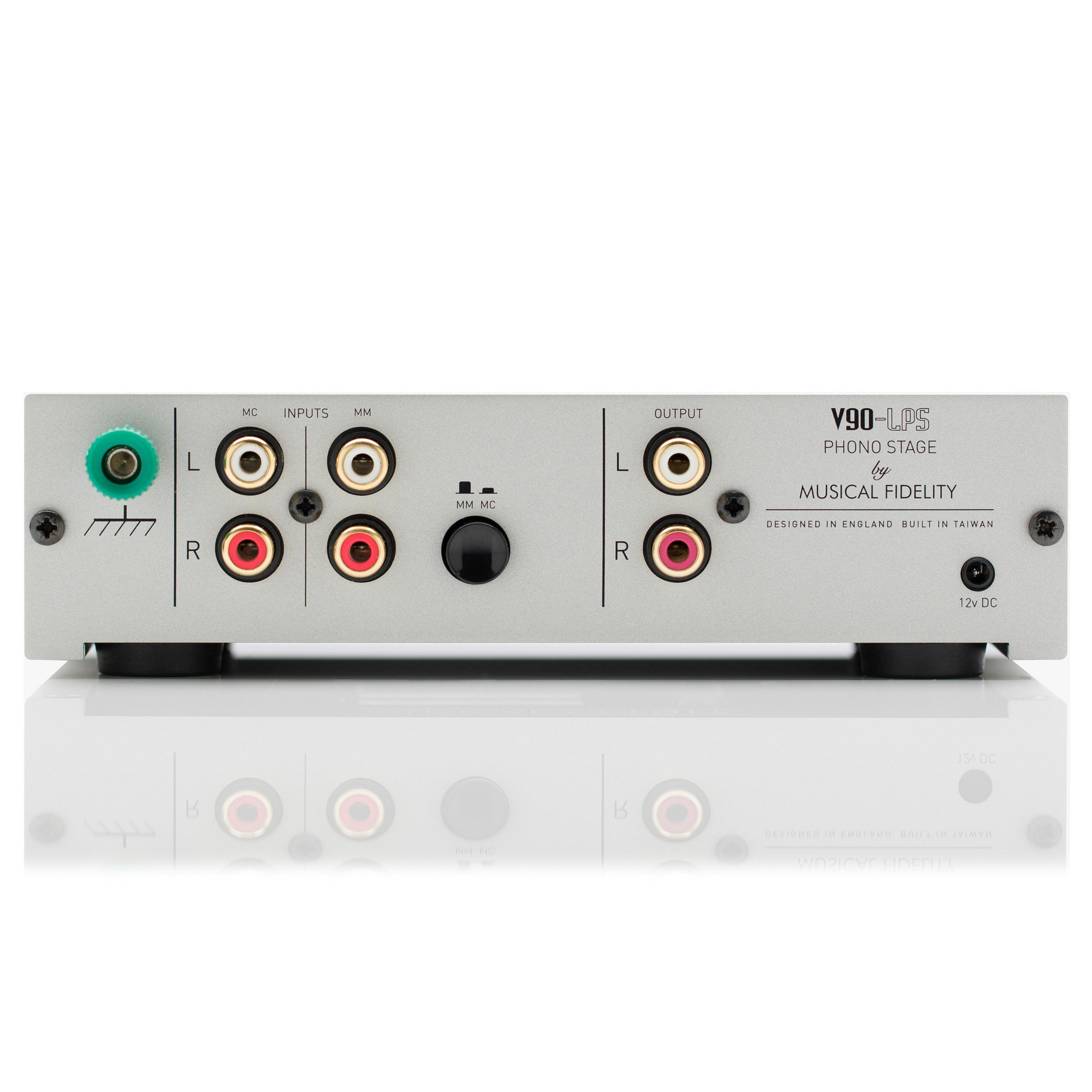 Musical Fidelity V90-LPS размещен в небольшом металлическом корпусе и оснащен внешним блоком питания. Все эти меры призваны защитить чувствительные схемы аппарата от электрических помех. На передней панели, изготовленной из алюминия, расположен миниатюрный тумблер включения со светодиодным индикатором. Модель рассчитана на работу с ММ- и MC-картриджами, при этом на задней панели Musical Fidelity V90-LPS находятся две пары входных RCA-клемм для их независимого подключения. Каждый из входов рассчитан на работу со звукоснимателем определенного типа, а сигнал с одного из них выбирается с помощью кнопки. Такое решение обеспечивает удобство при использовании Musical Fidelity V90-LPS, так как позволяет обойтись без перекоммутации кабелей при переходе с одного картриджа на другой. Выход фонокорректора выполнен на RCA-гнездах. Все разъемы имеют позолоченные контактные поверхности, что обеспечивает долговечное соединение.
