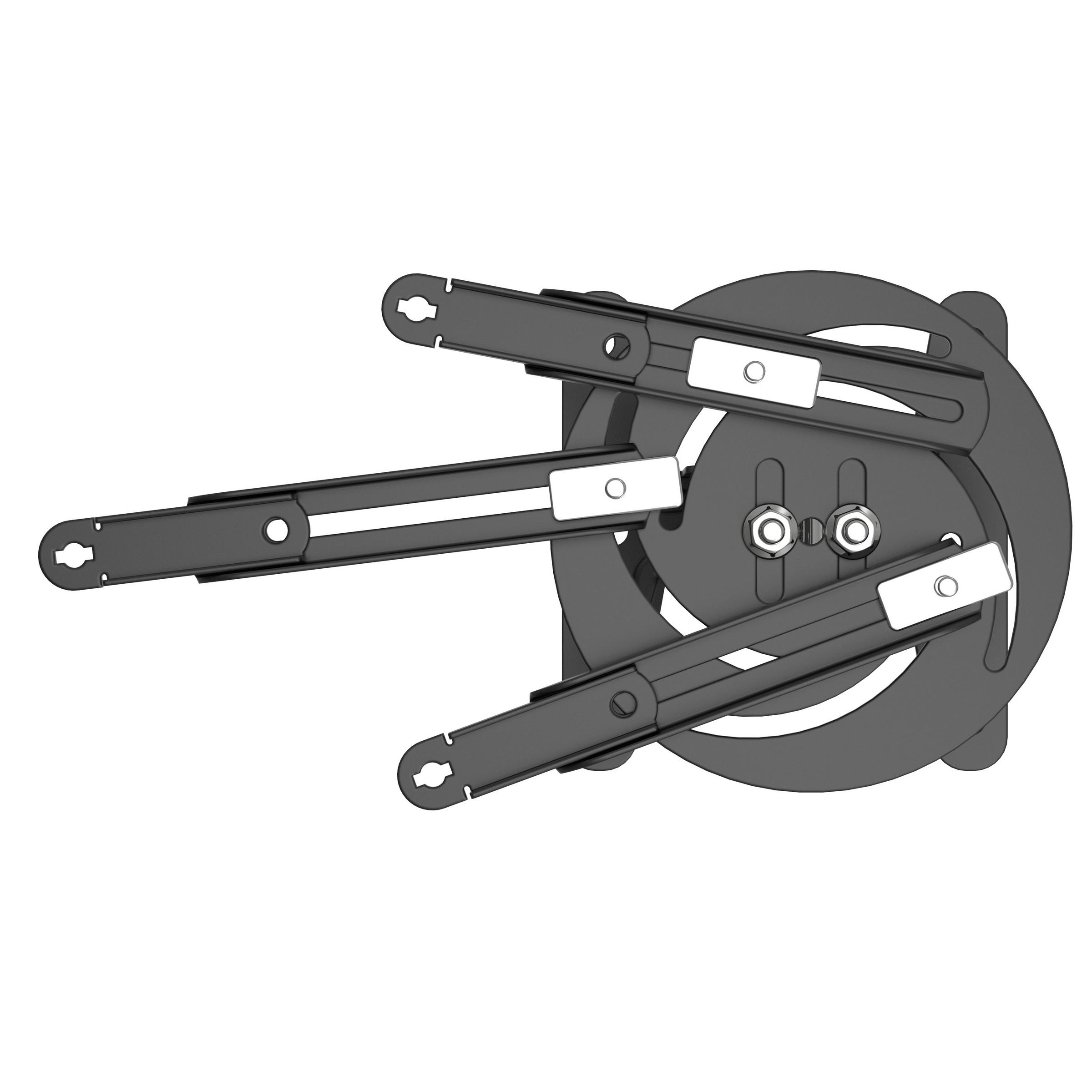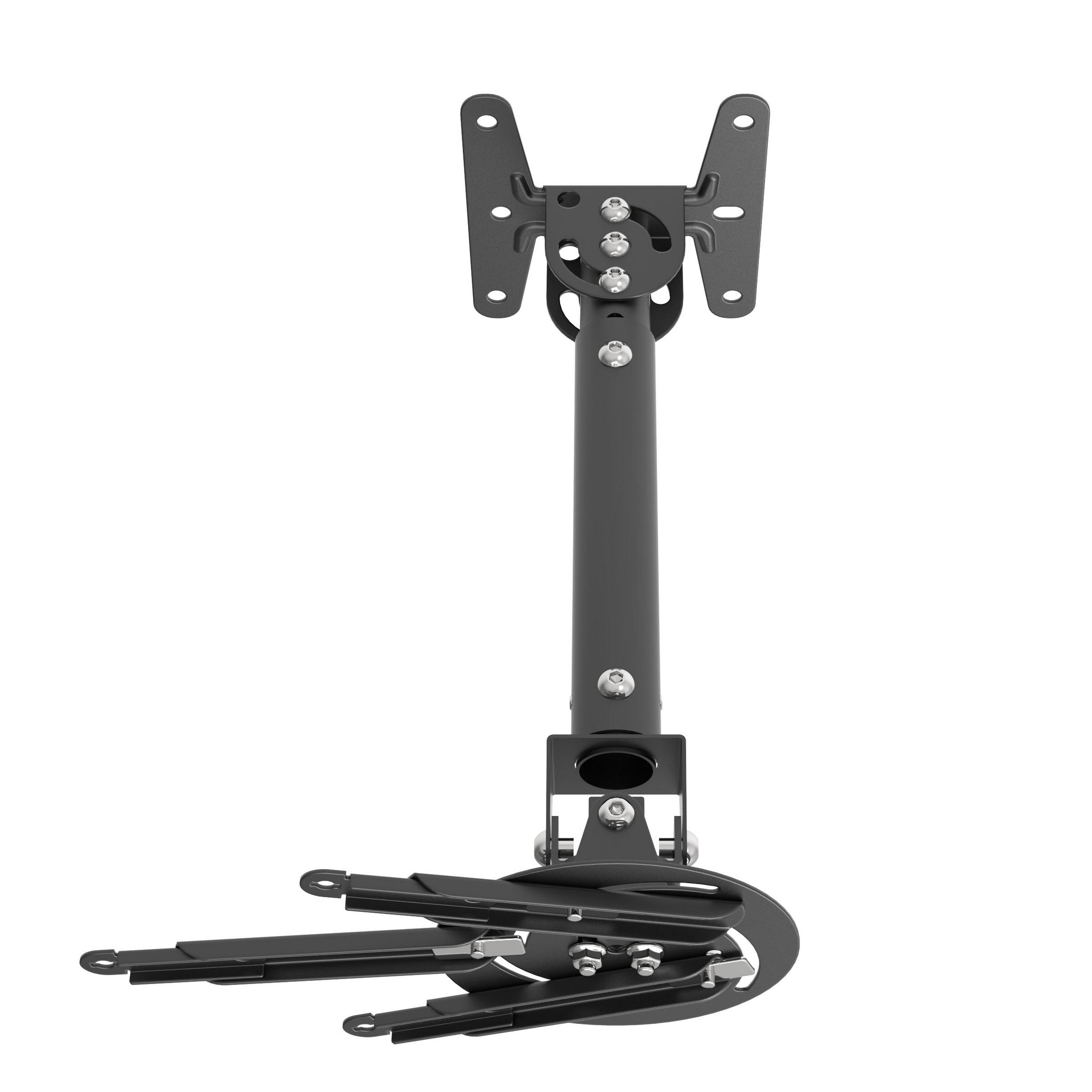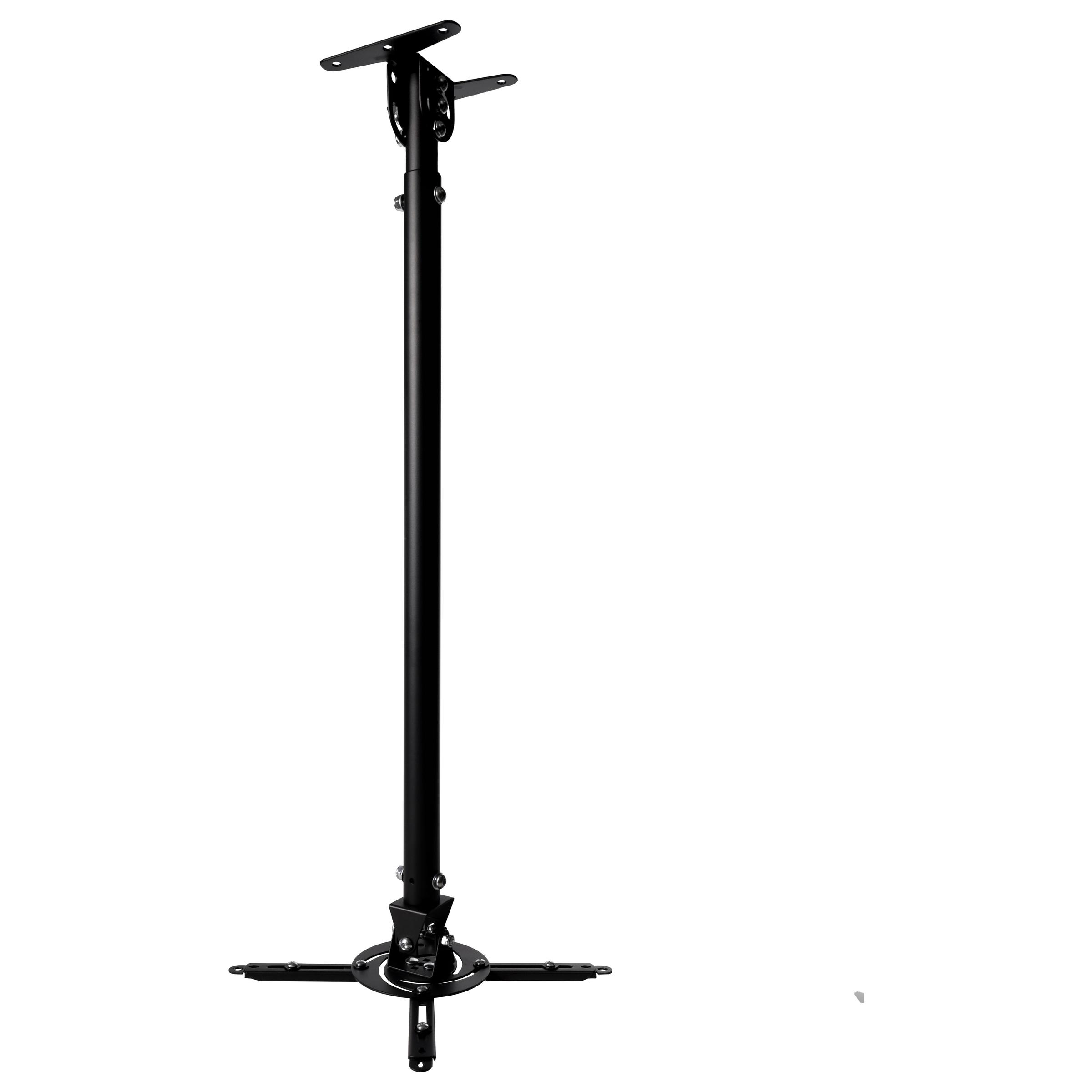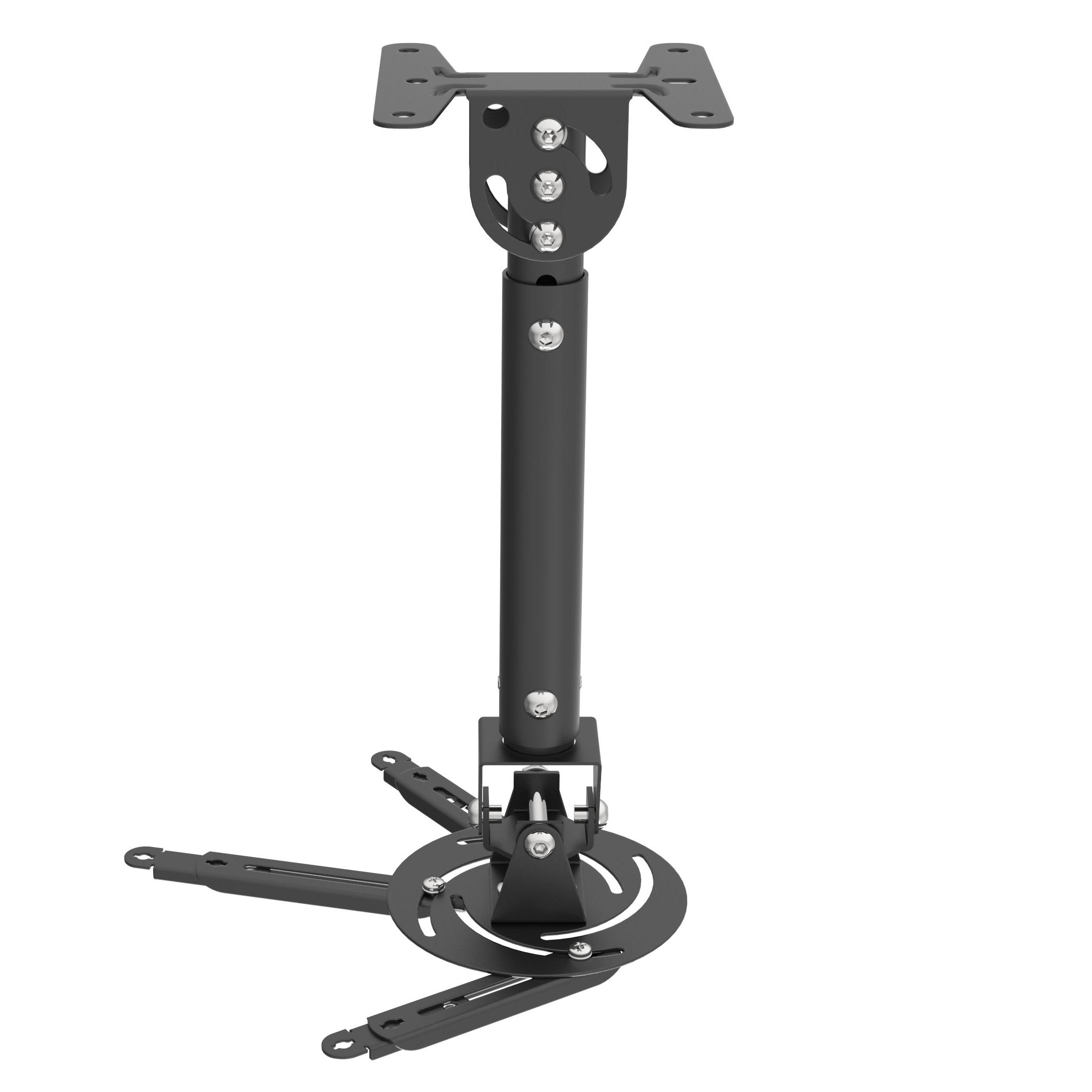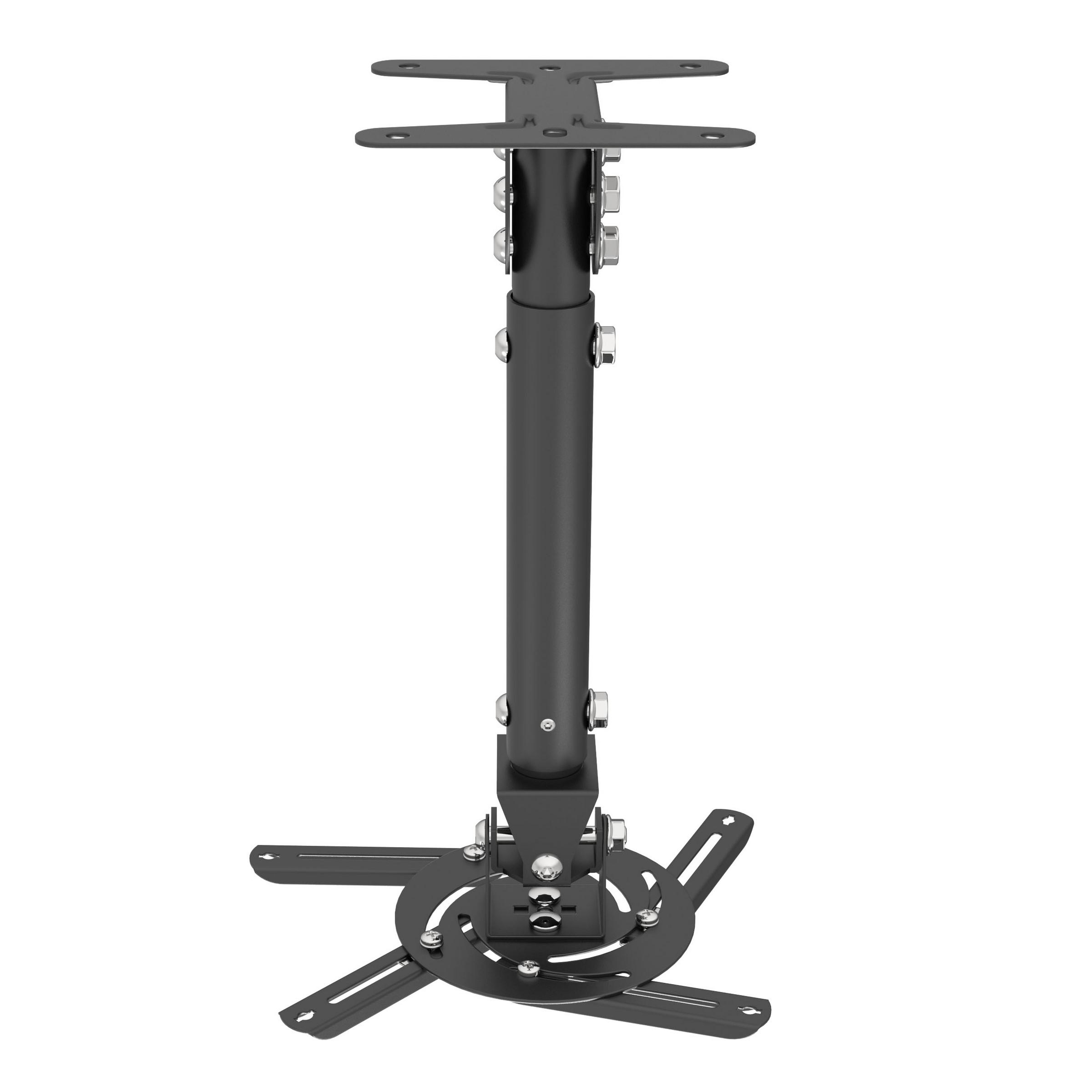 Потолочный кронштейн для проектора. Состоит из крепления к проектору, штанги 82 - 141 cм и площадки к потолку. Максимальное расстояние между крепежными отверстиями 370 мм, наклон +/-15°, поворот +/-15°, вращение 180°. Угол наклона штанги +/-45°. Максимальная нагрузка до 12 кг. Вес 3,7 кг. Цвет черный.