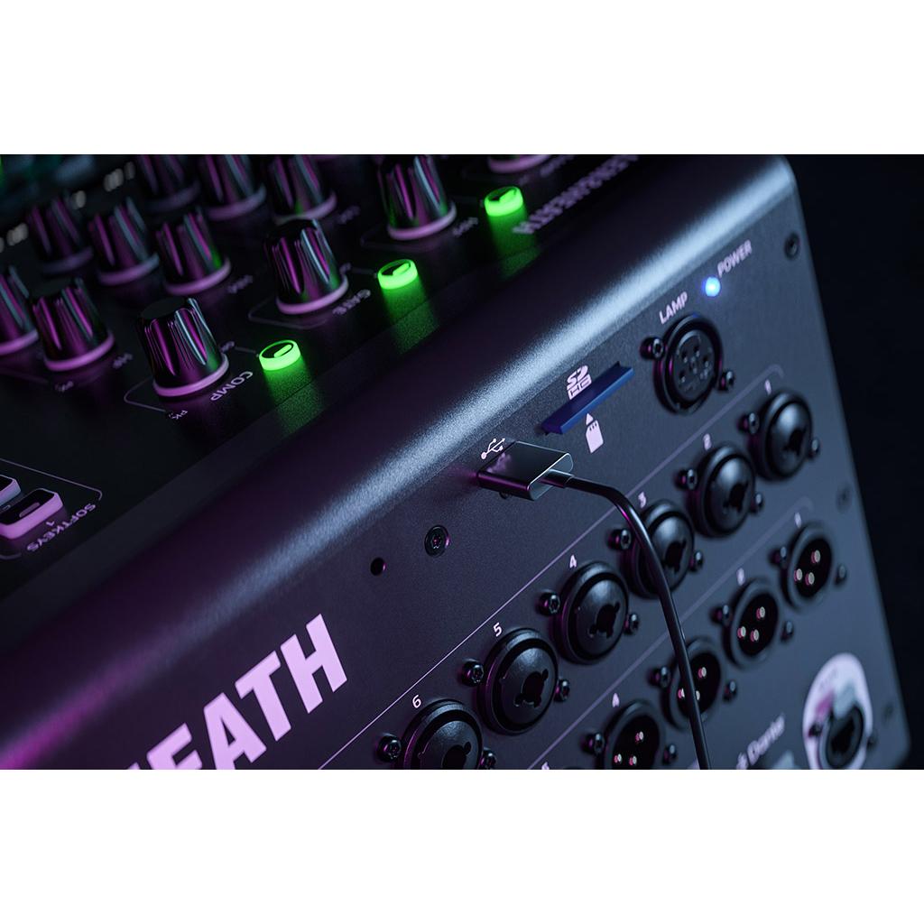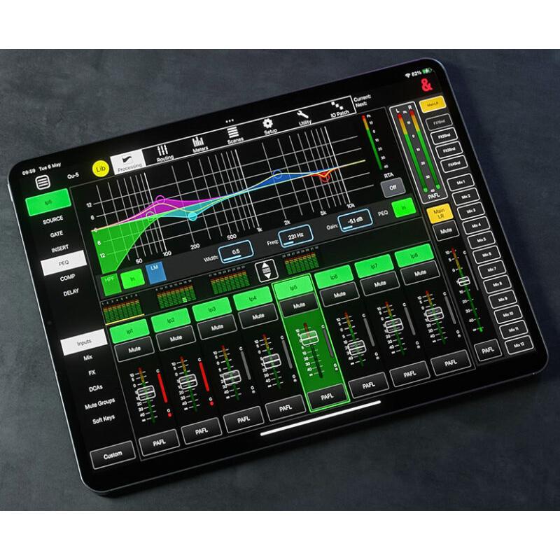 Пульт оснащён 25 моторизованными фейдерами с четырьмя слоями, большим 7-дюймовым сенсорным экраном и шестью независимыми процессорами эффектов FX. Встроенный DEEP AMM на 32 канала автоматически регулирует уровни микрофонов при работе с речью, а инструменты Gain Assistant и Feedback Assistant ускоряют настройку сцены. Для записи и воспроизведения предусмотрены USB-C интерфейс (32х32, 96 кГц) и слот SD-карты, позволяющий вести многоканальную запись без компьютера. Через SLink-порт пульт подключается к системе Everything I/O и персональному мониторингу ME, поддерживая до 128х128 каналов.