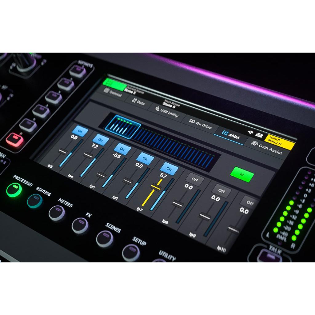 Allen & Heath QU-6D - это универсальный цифровой пульт для профессиональных звукоинженеров, который объединяет мощность серии QU и гибкость Dante-сетей. Он создан для живого звука, театральных постановок, конференций и инсталляций, где требуется стабильность, скорость настройки и прозрачное звучание. Как и все модели линейки, QU-6D построен на 96 кГц XCVI FPGA-ядре, обеспечивающем обработку с глубиной до 96 бит и задержкой менее 0,7 мс. Такой уровень производительности делает систему пригодной для туровых инсталляций и студийного мониторинга без компромиссов по качеству.