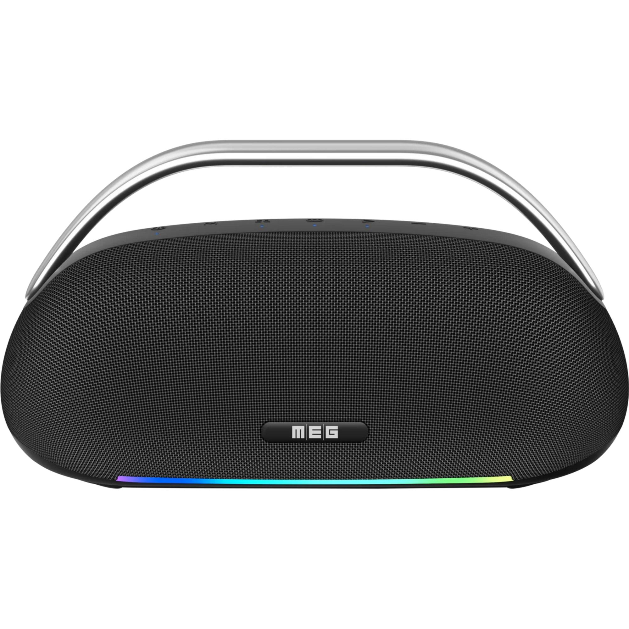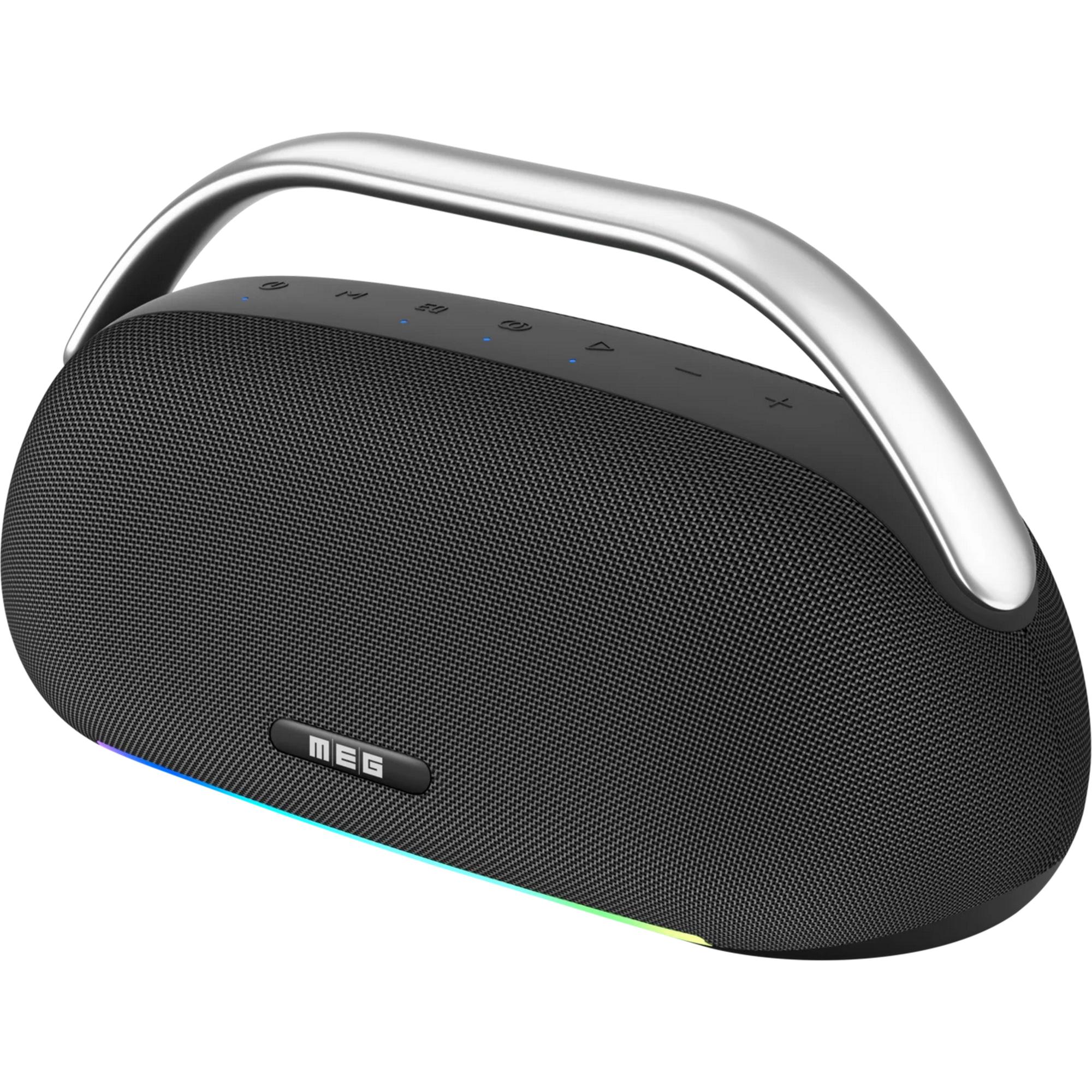 Портативная колонка для вечеринок с функцией караоке. Стереофоническое звучание, суммарная мощность 60 Вт. Три встроенных динамика, поддержка Bluetooth 5.3. Входы USB Type-A, AUX и слот MicroSD. Возможность объединения двух колонок в стереопару TWS. Встроенный аккумулятор емкостью 4000 mAh, до 16 часов автономной работы. RGB-подсветка, функция Power Bank, эквалайзер и режим hands free. Габариты (ШхВхГ) 349 х 145 х 188 мм. Вес 2,5 кг.Бренд MEG — это современная компания, специализирующаяся на создании портативных беспроводных колонок. С момента своего появления MEG стремится сделать качественный звук доступным каждому, предлагая устройства, которые легко взять с собой куда угодно — домой, на природу или в путешествие.