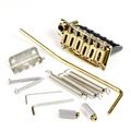 Тремоло-система для электрогитары типа Stratocaster. Конструкция с 2 опорными штифтами и 6 прямоугольными седлами из нержавеющей стали. Спейсинг 10.8 мм, габариты 73.5 х 40 мм. Медная отделка. В комплекте саморезы, 3 пружины, рычаг, 2 штифта и 2 шестигранных ключа для настройки.