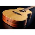 Верхняя дека представлена массивом ели Энгельмана, что обеспечивает яркий и насыщенный тембр за счет обогащения гармониками, возникающими в процессе резонирования. Нижняя дека и обечайки сделаны из древесины сапеле, а гриф изготовлен из дерева окуме. Оба этих материала относятся к семейству махагони и имеют схожий с ним мягкий и глубокий характер звучания. Накладка и бридж выполнены из синтетического экологичного материала BrankoWood, на который не влияют влажность и температура воздуха, а верхний и нижний порожки сделаны из графита.