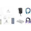Аппарат оснащен USB, оптическим и коаксиальным входами, а также балансным и небалансным аналоговыми выходами. iFi audio NEO iDSD может работать в режимах фиксированного и регулируемого уровня выходного сигнала, что повышает гибкость построения стереосистемы. На передней панели устройства находятся небалансный (6,3 мм) и балансный (4,4 мм) выходы на наушники. Аппарат развивает до 1 Вт (при нагрузке 32 Ом) на балансном выходе, что позволит полноценно прокачать даже самые требовательные к величине подаваемой мощности наушники. Также устройство оснащено Bluetooth на новейшем чипе Qualcomm QCC5100. Имеется поддержка всех улучшенных аудиокодеков и возможность запоминания до 7 подключенных мобильных устройств.