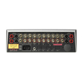 Усилитель имеет шесть линейных входов, две пары выходов с предусилителя, линейный выход для озвучивания второй зоны, а также специальные разъемы для подключения фирменной системы управления MC Bus. Для каждого входа можно индивидуально установить чувствительность (что очень удобно, так как разные источники сигнала имеют различный уровень на линейном выходе), а также присвоить имя. Акустические системы к усилителю можно подключать по двухкабельной схеме, так как он оснащен двумя парами фирменных выходных клемм. Имеется также выход на наушники, расположенный на задней панели.