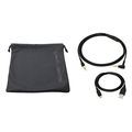 На левой чашке наушников расположены кнопки регулировки громкости, управления воспроизведением композиций, а также микрофон, благодаря наличию которого с помощью Audio-Technica ATH-SR5BT можно отвечать на входящие звонки на подключенном смартфоне. В случае полного разряда аккумулятора наушников их можно подключить с помощью входящего в комплект кабеля длиной 1,2 метра. Интересной особенностью данной модели является то, что этот провод также оснащен пультом ДУ с микрофоном, что позволяет сохранить функцию ответа на звонки и управления. Также вместе с Audio-Technica ATH-SR5BT поставляются USB-кабель для зарядки аккумулятора и чехол для хранения.