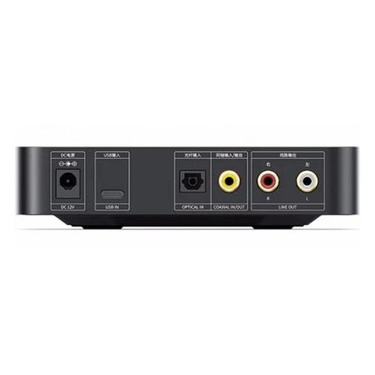 ЦАП/усилитель для наушников оснащен входами USB-C, оптическим и коаксиальным. Последний также используется и в режиме выхода, если задействовано USB-С подключение. Поддерживается PCM-сигнал с параметрами 24 бит / 384 кГц и DSD с частотой 11,2 МГц. В модели установлен электронный регулятор громкости на базе резистивной лестничной схемы, обеспечивающий точный баланс каналов и отсутствие шумов. Для подключения наушников на фронтальной панели есть небалансное гнездо 6,3 мм и балансный разъем 4,4 мм. Можно выбрать один из трех вариантов коэффициента усиления (с индивидуальной характеристикой настройки уровня сигнала) для оптимального согласования с наушниками с различным импедансом. Значительная выходная мощность усилителя делает звучание динамичным и детализированным.