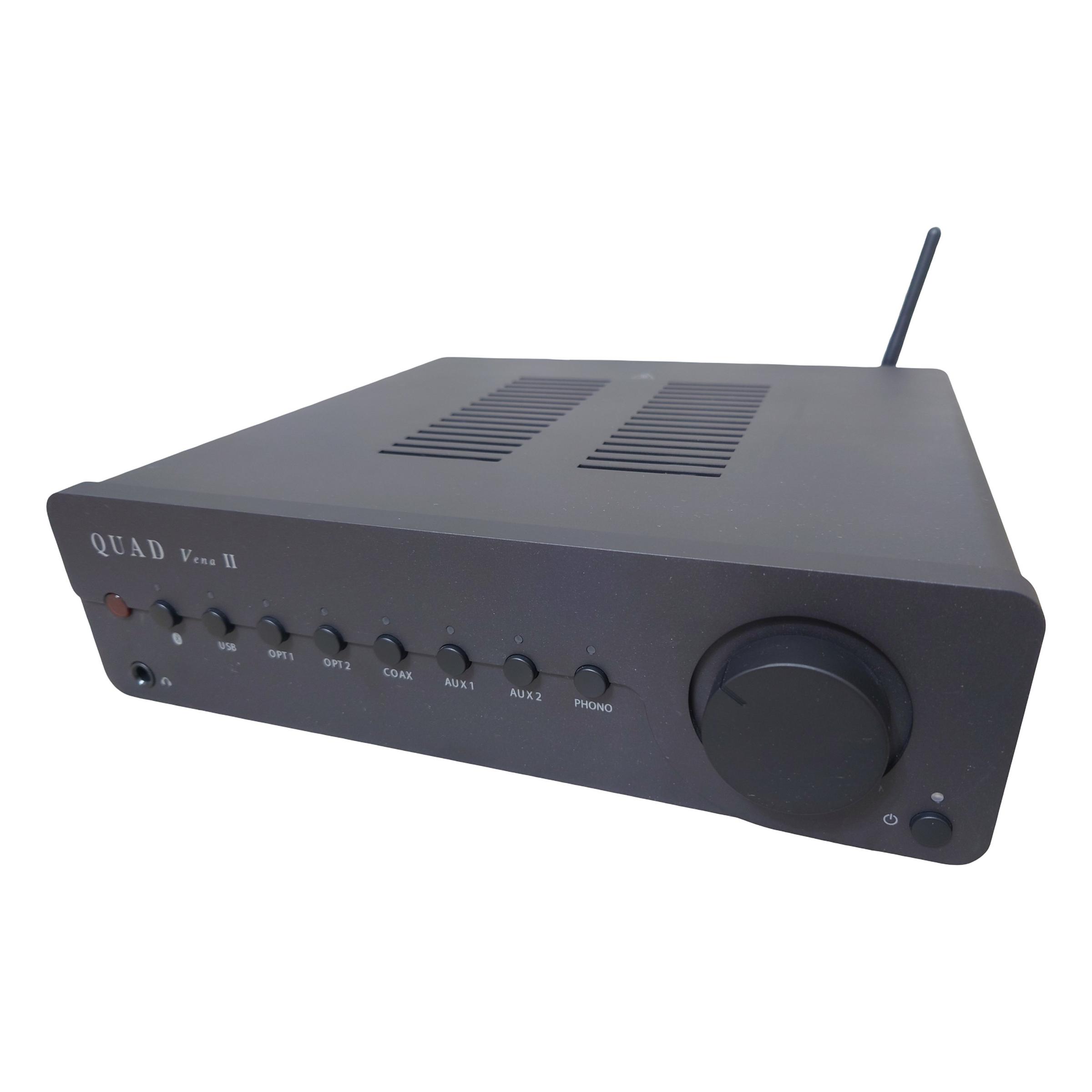Беспроводные технологии в Quad Vena II представлены Bluetooth с поддержкой улучшенного аудиокодека aptX. По своим возможностям аппарат является отличным решением для создания небольшой универсальной стереосистемы. Источникам сигнала для нее могут стать проигрыватель винила, телевизор, ПК или смартфон. Quad Vena II уверенно раскачает крупную полочную акустику. Звучание усилителя отличается сбалансированностью и широкой стереокартиной и хорошо подходит для прослушивания музыки различных жанров.