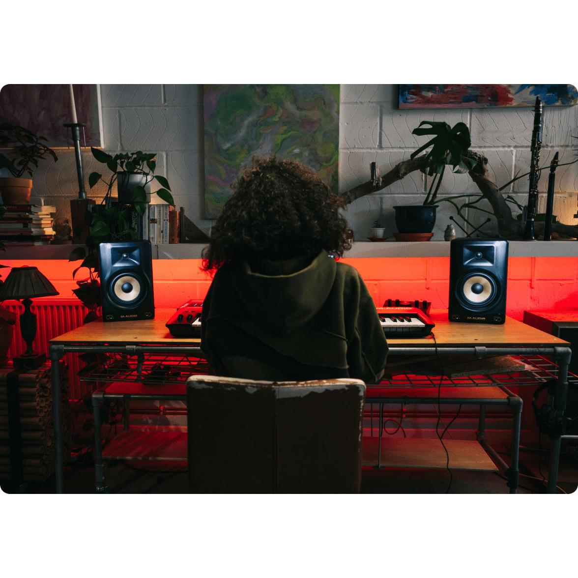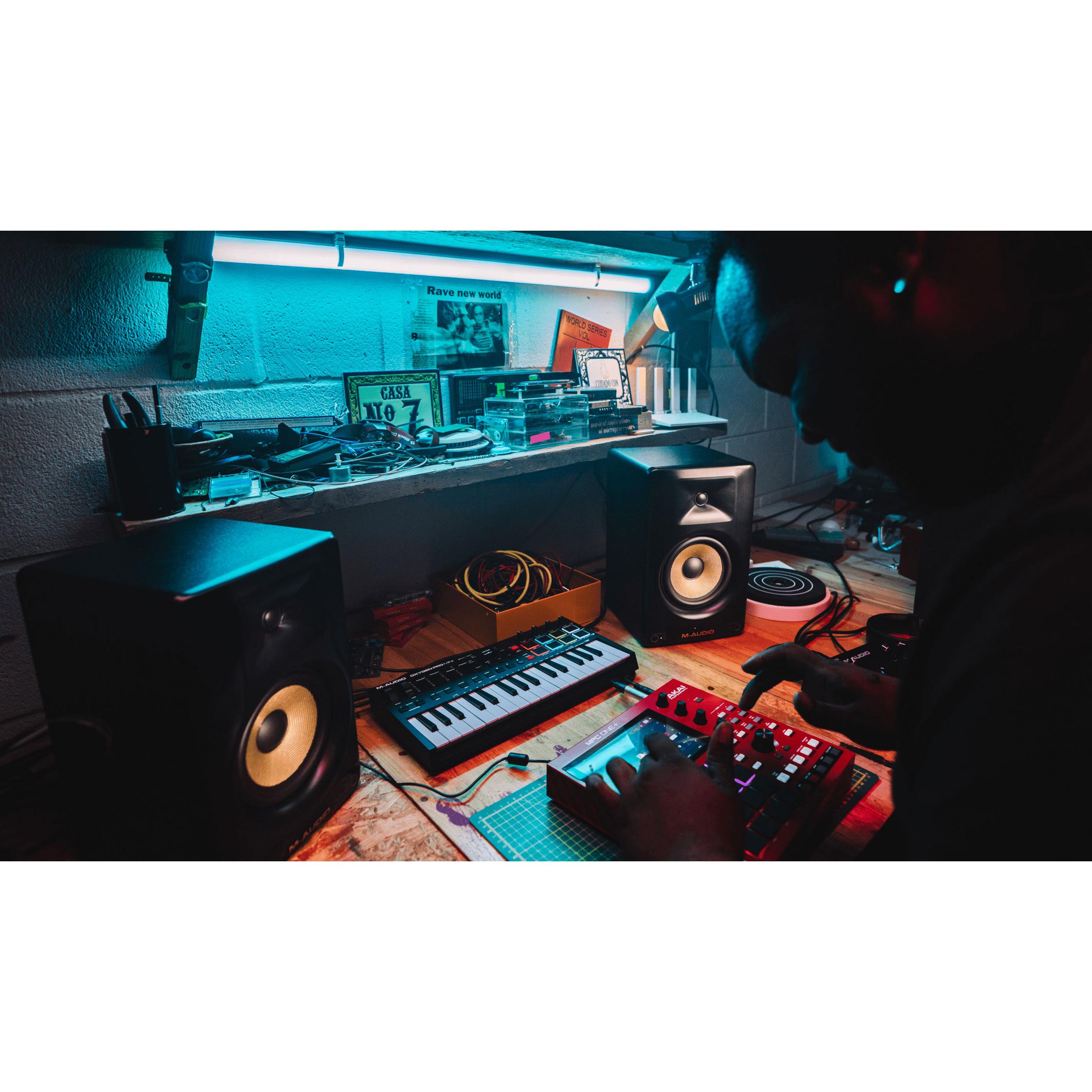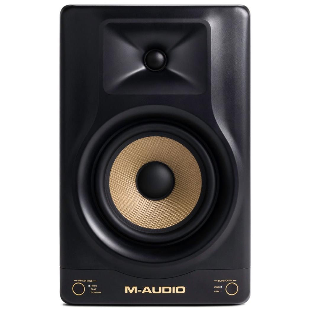 Интересной и удобной функцией является наличие Bluetooth версии 5.3, который позволяет принимать аудиосигнал и воспроизводить стереосигнал по фирменной технологии Stereo-Linked. Встроенный DSP-процессор предлагает 3 режима звучания: Hype (мощный и «накаченный» звук), Flat (линейный тембр) и Custom (пользовательская настройка). Режимы Hype и Flat подойдут для прослушивания музыки и работы над звуком соответственно. Пресет Custom можно настроить вручную в приложении M-Audio Forty Series Control, доступного для мобильных платформ iOS и Android.