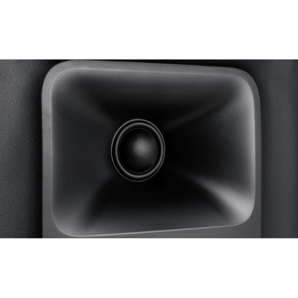 Монитор оборудован 6.5-дюймовым вуфером из кевлара, который отличается легкой и невероятно прочной конструкцией, а также высокой скоростью колебаний. Это обеспечивает четкое и ровное звучание низких и средних частот, что крайне важно на этапе обработки аудиоматериала. 1-дюймовый твитер оснащен мягким куполом и нагружен на волновод, способствующий широкой и объемной зоне звукового покрытия. Динамики формируют дисперсию 120 градусов по горизонтали и 90 градусов по вертикали.