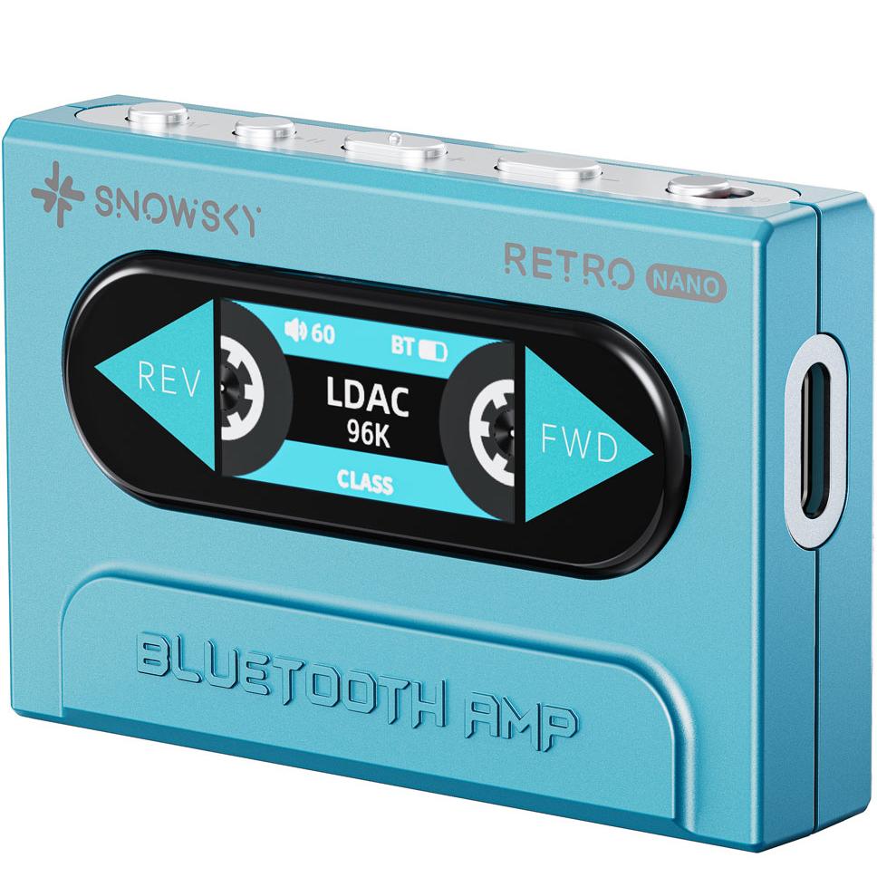 Портативный усилитель для наушников FiiO Snowsky Retro Nano выполнен в дизайне кассетного плеера миниатюрных размеров. На передней панели устройства находится 0,96-дюймовый IPS-дисплей, на который выводится анимированная графика, а также информация о работе устройства. Кнопки в форме клавиш аналогового устройства для управления функциями расположены на верхней панели. Аппарат отличается высоким качеством изготовления и отделки. Модель выпускается в голубом или белом цветах оформления. На корпусе аппарата имеются отверстия, сквозь которые можно продеть ремешок для его ношения на руке или шее.