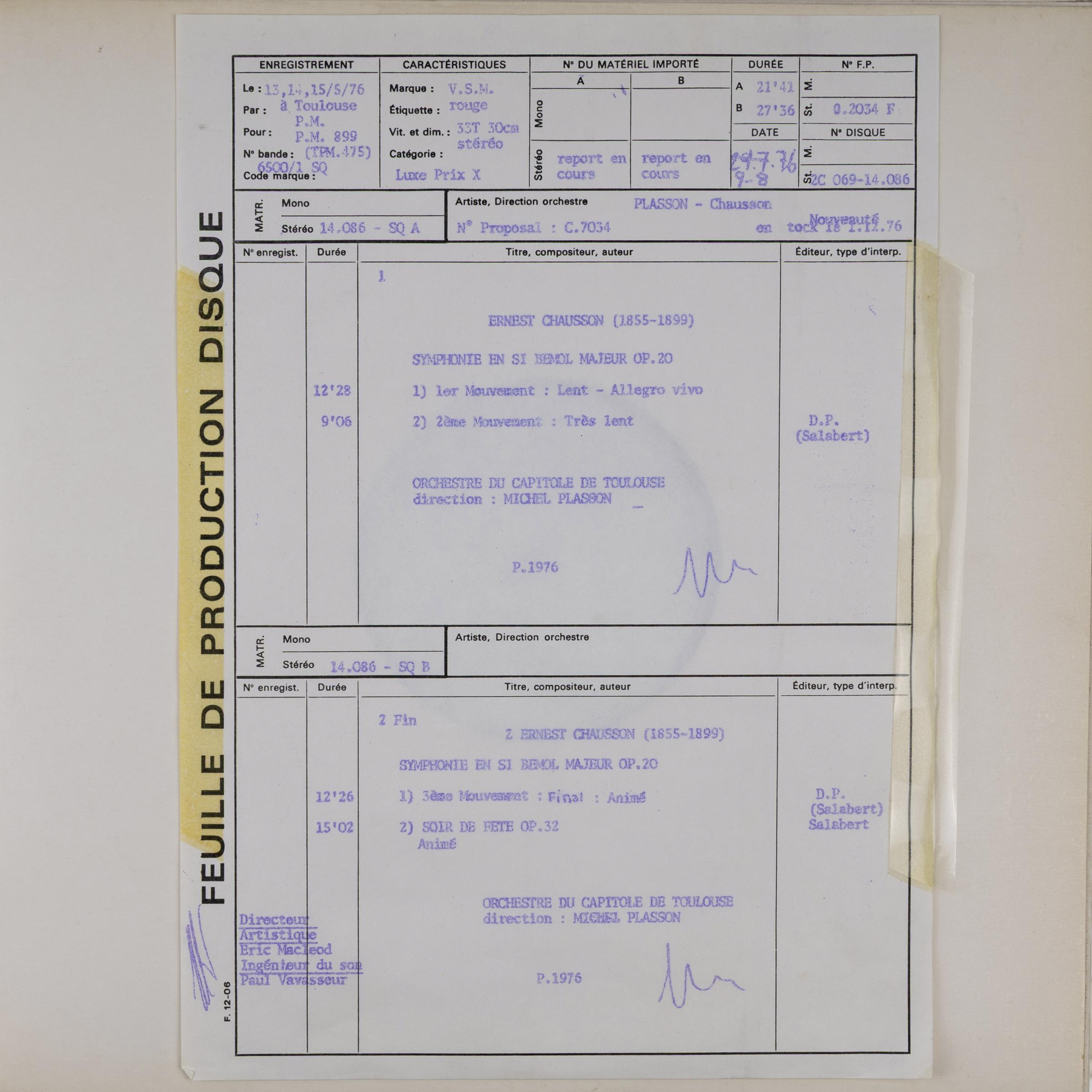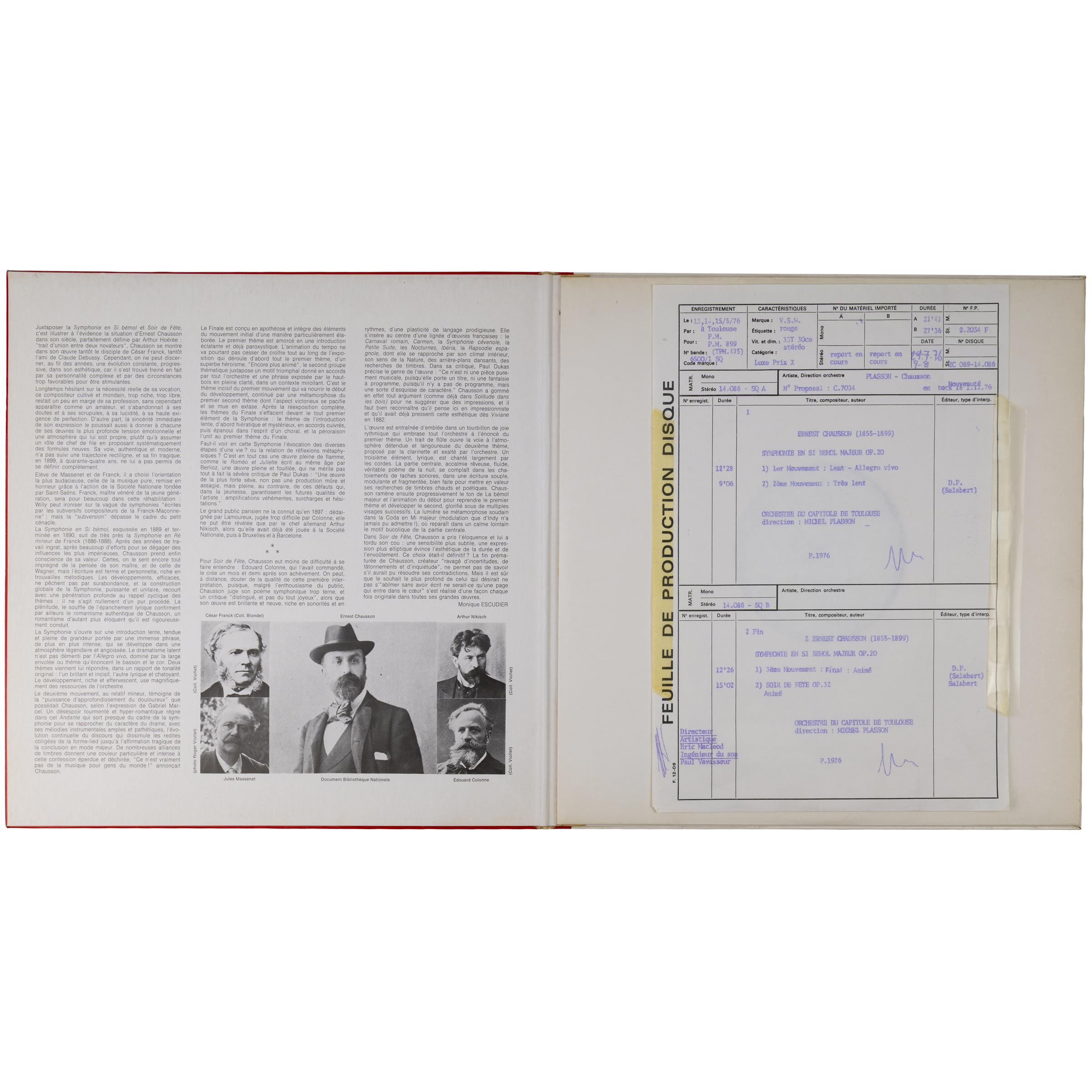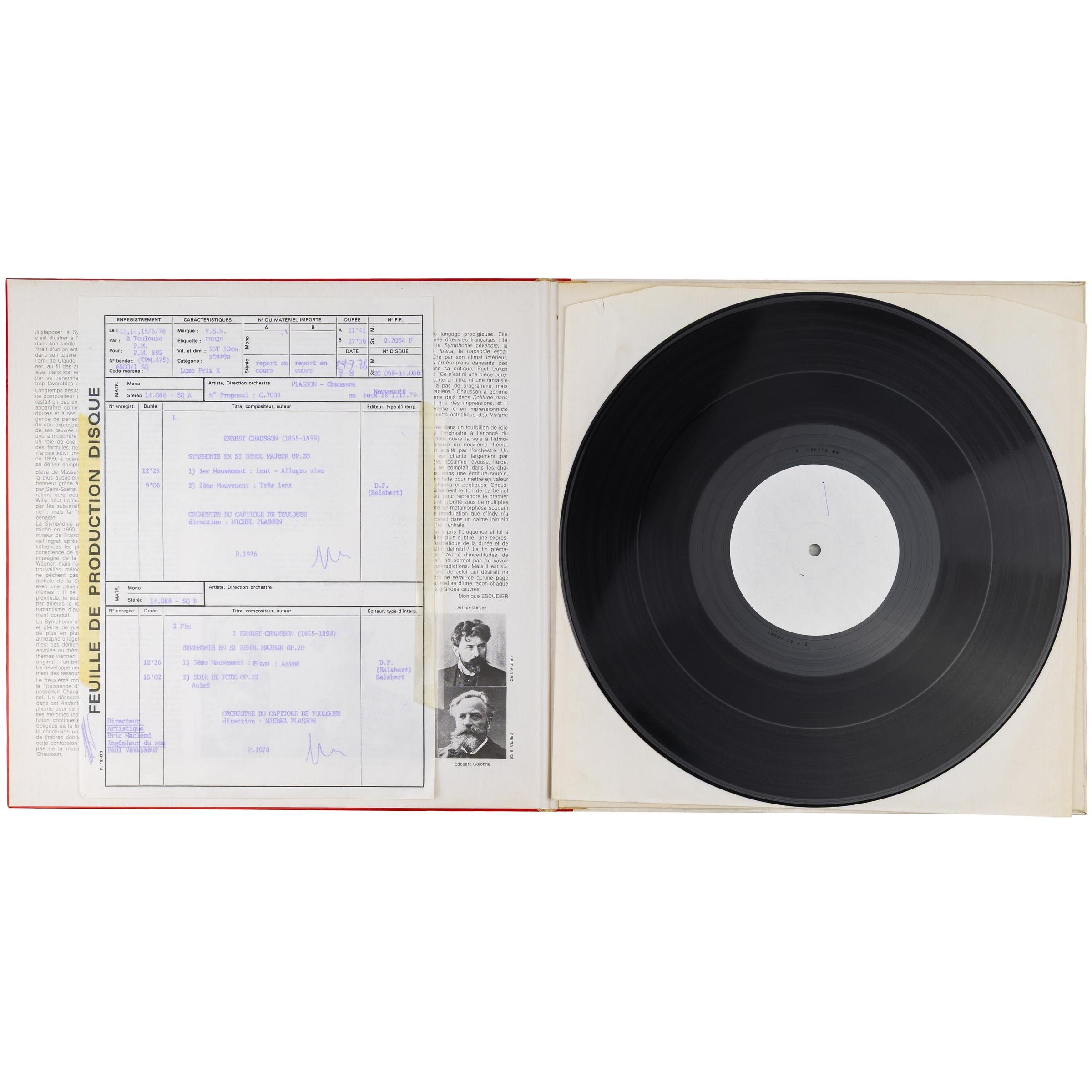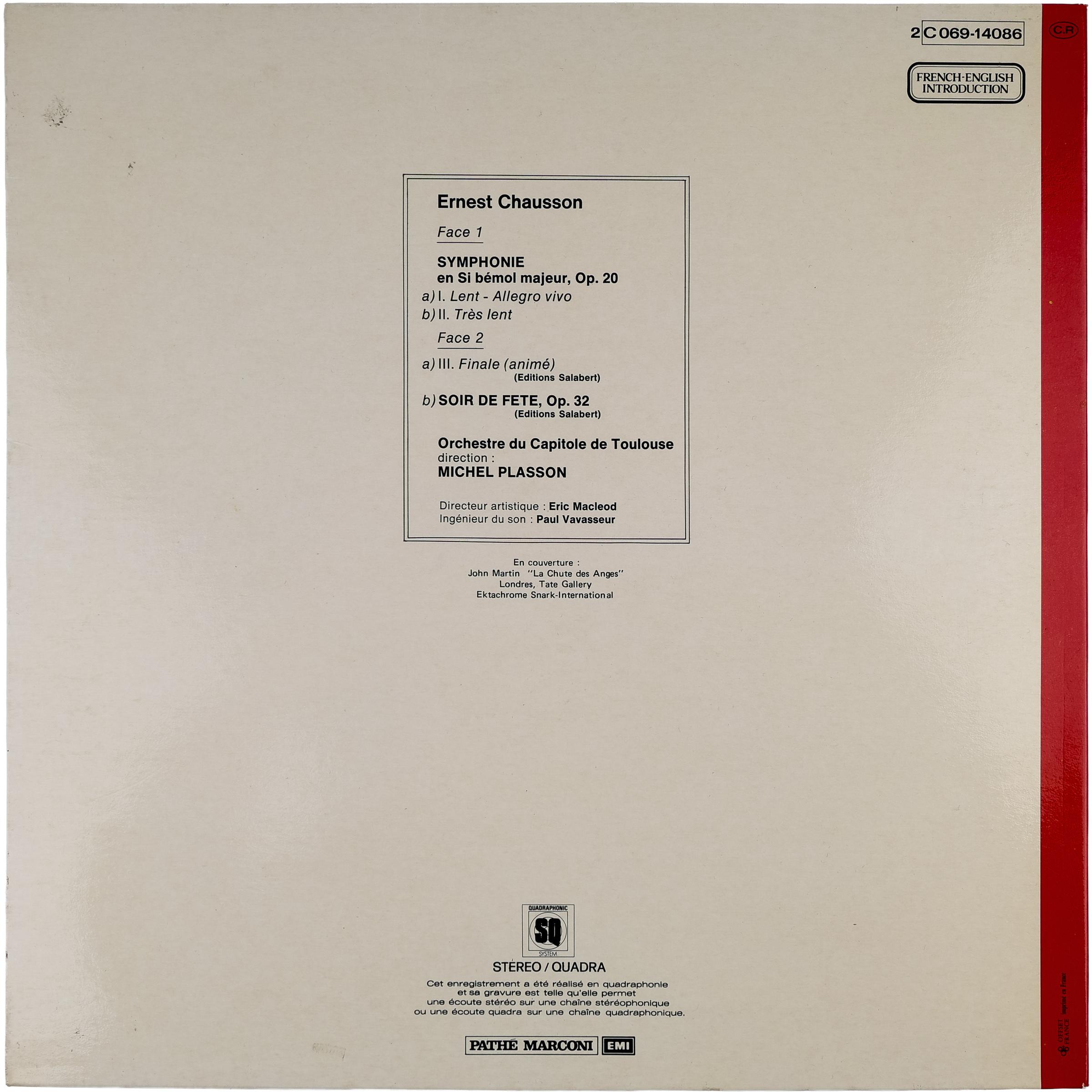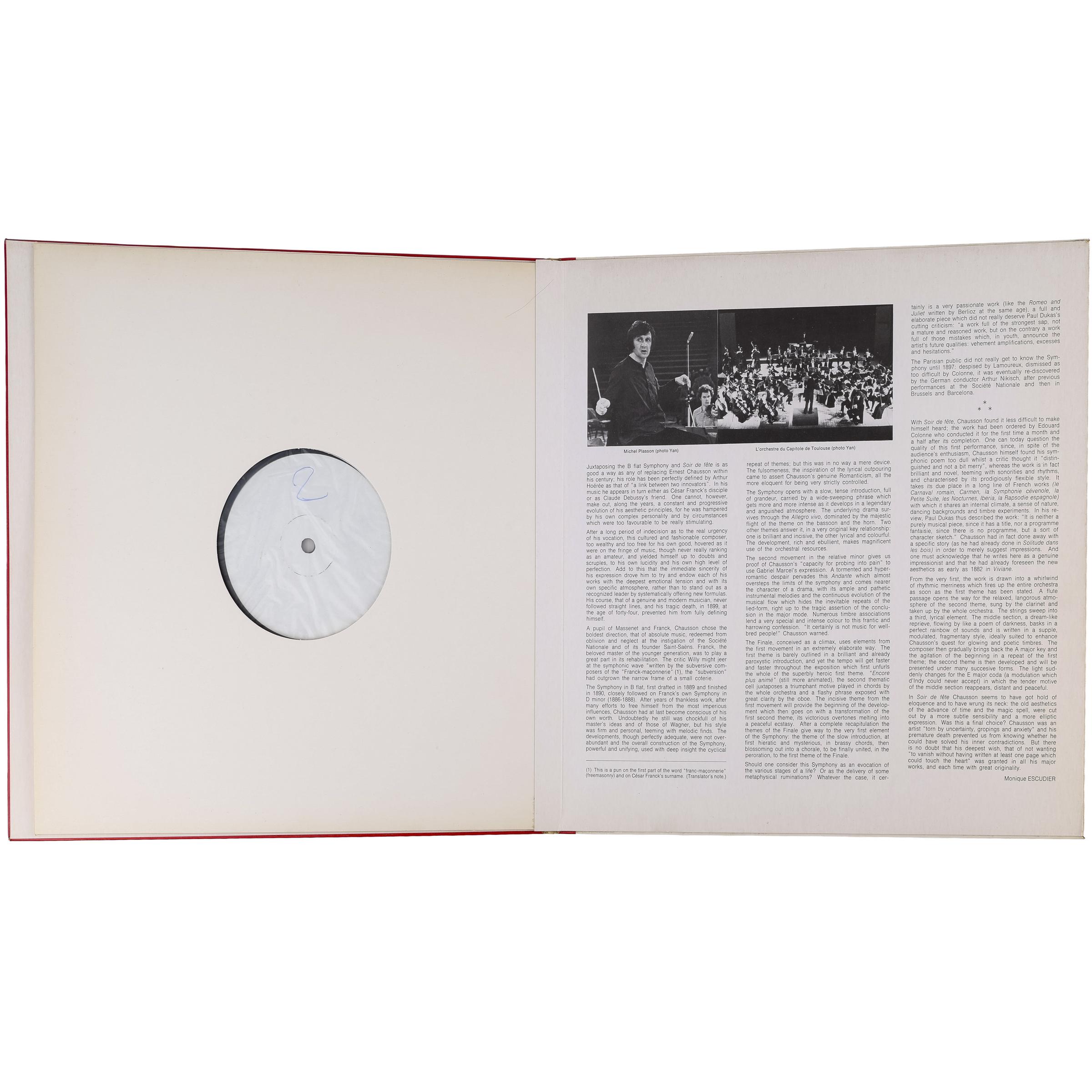Описание винтажной виниловой пластинки CHAUSSON - SYMPHONIE, SOIR DE FETE (MICHEL PLASSON) (TEST PRESSING)