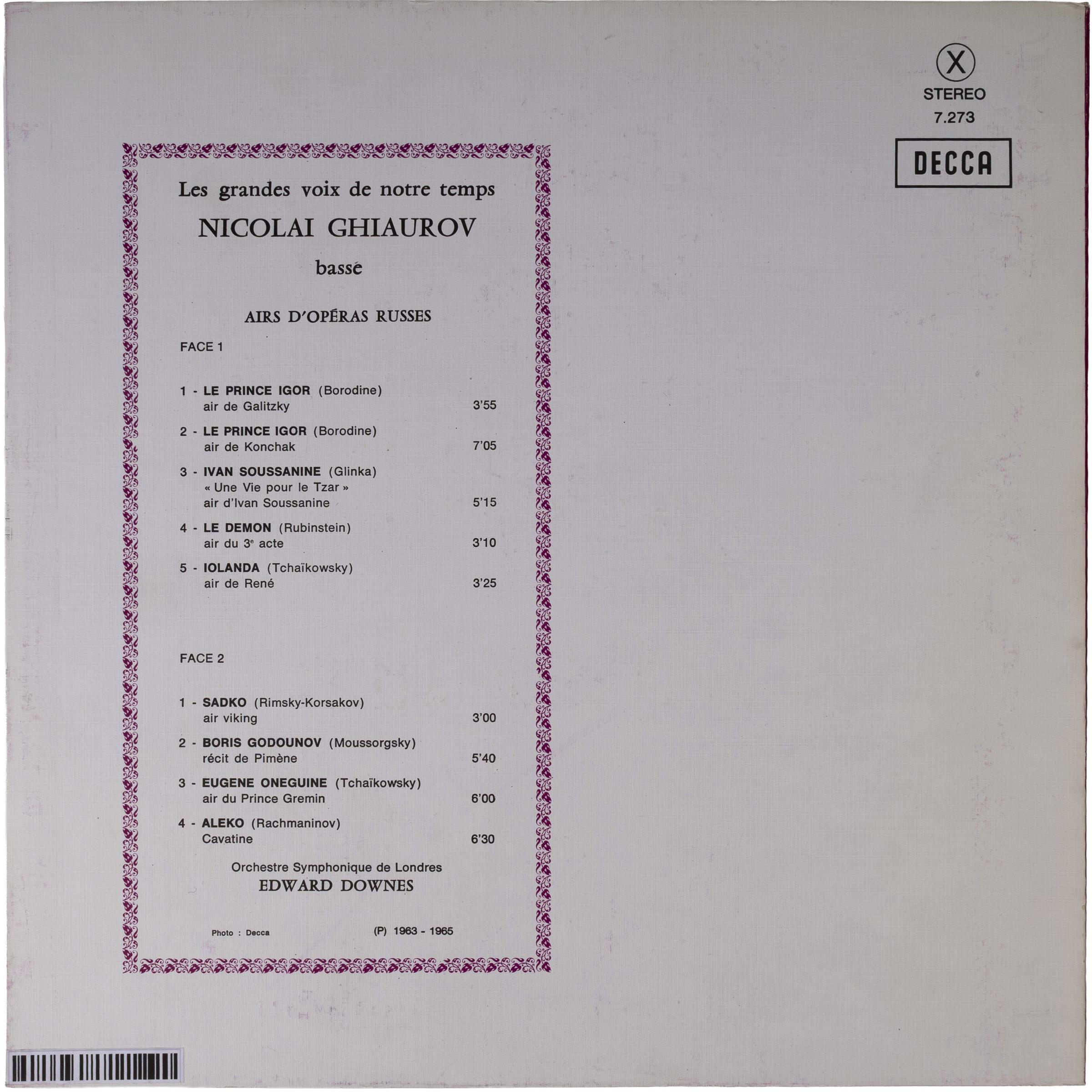 Описание винтажной виниловой пластинки LES GRANDES VOIX DE NOTRE TEMPS (NICOLAI GHIAUROV)