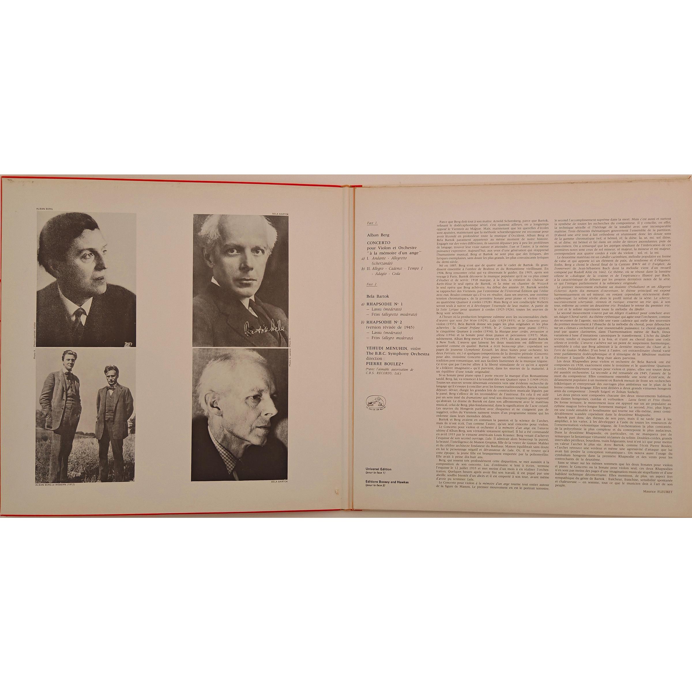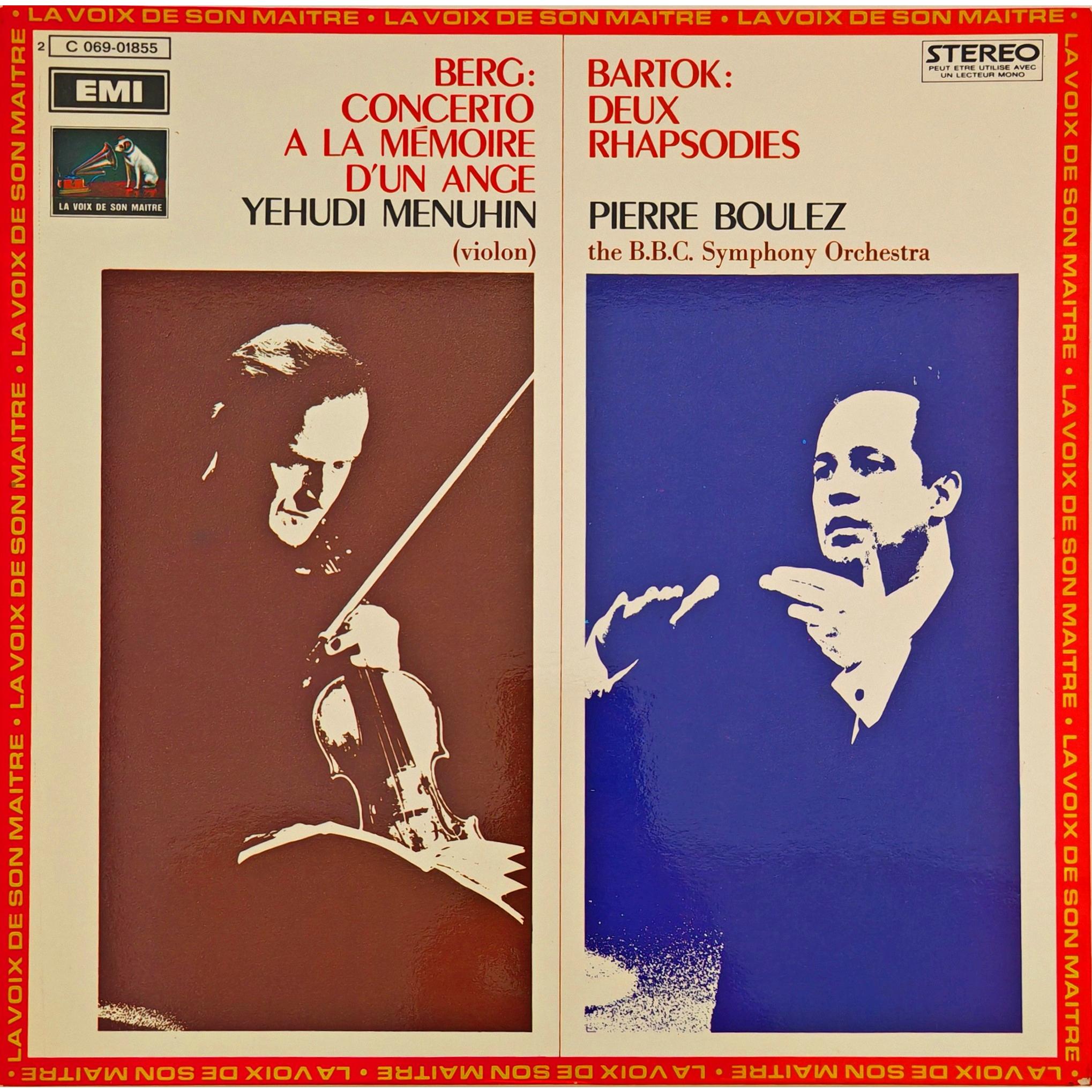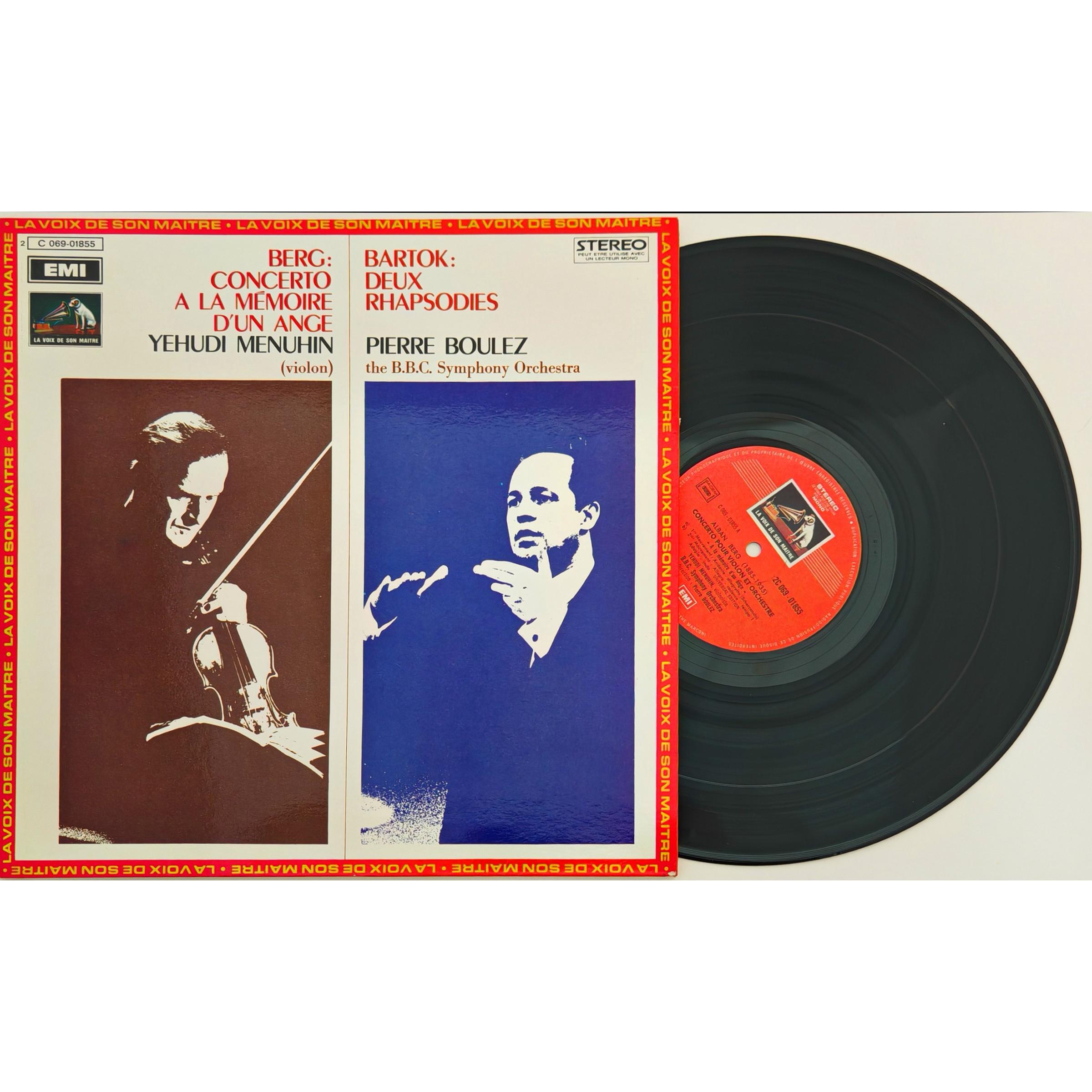 - Винтажная виниловая пластинка BERG - CONCERTO A LA MEMOIRE D' UN ANGE (YEHUDI MENUHIN); BARTOK - DEUX RHAPSODIES (PIERRE BOULEZ) (Количество пластинок: 1 шт. Размер пластинки: 12". Лейбл: LA VOIX DE SON MAITRE. Страна: Франция. Состояние пластинки: Near mint (NM) — почти идеальное состояние. Состояние конверта: Near mint (NM) — почти идеальное состояние.)