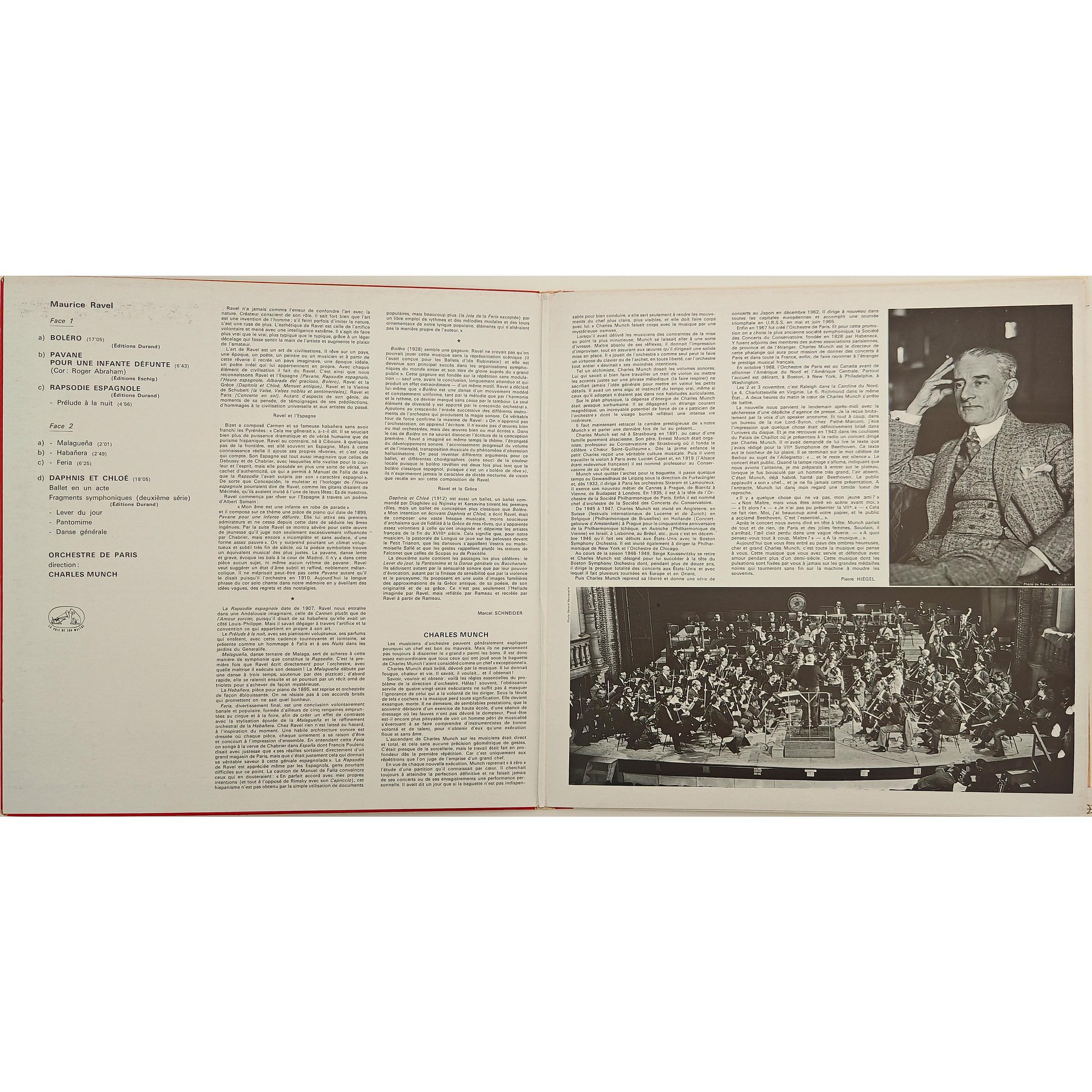 - Винтажная виниловая пластинка RAVEL - BOLERO, RAPSODIE ESPAGNOLE, PAVANE POUR UNE INFANTE DEFUNTE, DAPHNIS ET CHLOE, SUITE № 2 (CHARLES MUNCH) (Количество пластинок: 1 шт. Размер пластинки: 12". Лейбл: LA VOIX DE SON MAITRE. Страна: Франция. Год: 1969 г. Состояние пластинки: Near mint (NM) — почти идеальное состояние. Состояние конверта: Near mint (NM) — почти идеальное состояние.)