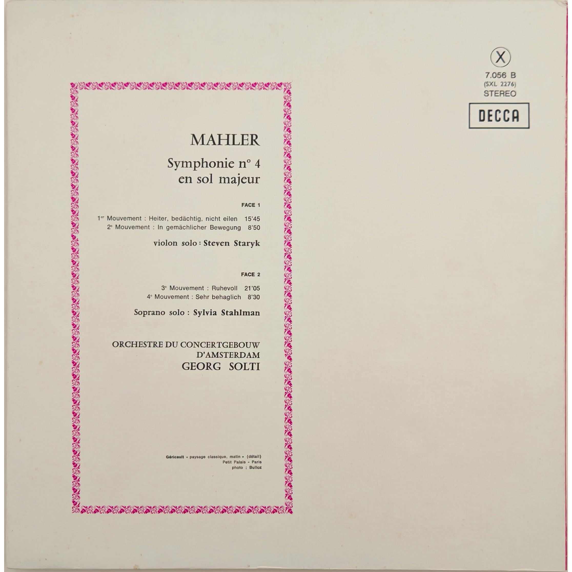 - Винтажная виниловая пластинка MAHLER - SYMPHONIE № 4 (GEORG SOLTI) (Количество пластинок: 1 шт. Размер пластинок: 12". Лейбл: DECCA. Страна: Франция. Состояние пластинки: Near mint (NM) — почти идеальное состояние. Состояние конверта: Near mint (NM) — почти идеальное состояние.)