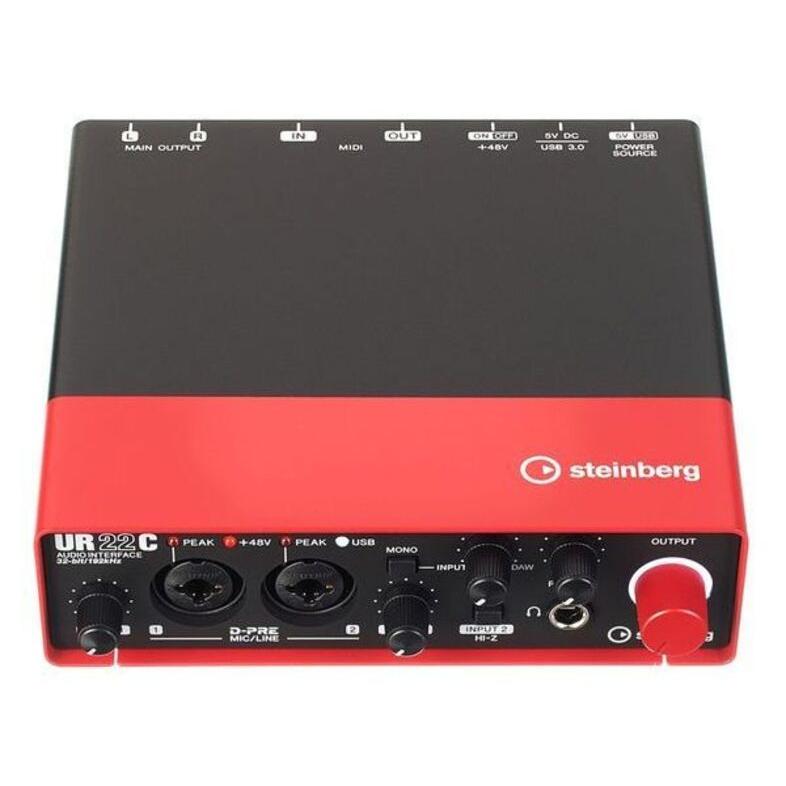 Steinberg UR22C – это профессиональный USB-аудиоинтерфейс, представляющий собой новую версию прошлой модели UR22. Данная звуковая карта является младшей в новой линейке «C». Основные нововведения коснулись интерфейса: теперь устройство поддерживает USB версий 2.0, 3.0 и 3.1. Модифицированы и АЦ/ЦА-конверторы, которые здесь поддерживают работу в форматах до 32 бит/192 кГц. Добавилась клавиша Mono/Stereo на лицевой панели, присутствует DSP-процессор, а также улучшены многие технические характеристики, такие как диапазон усиления, частотный диапазон, уровни шума и искажений.