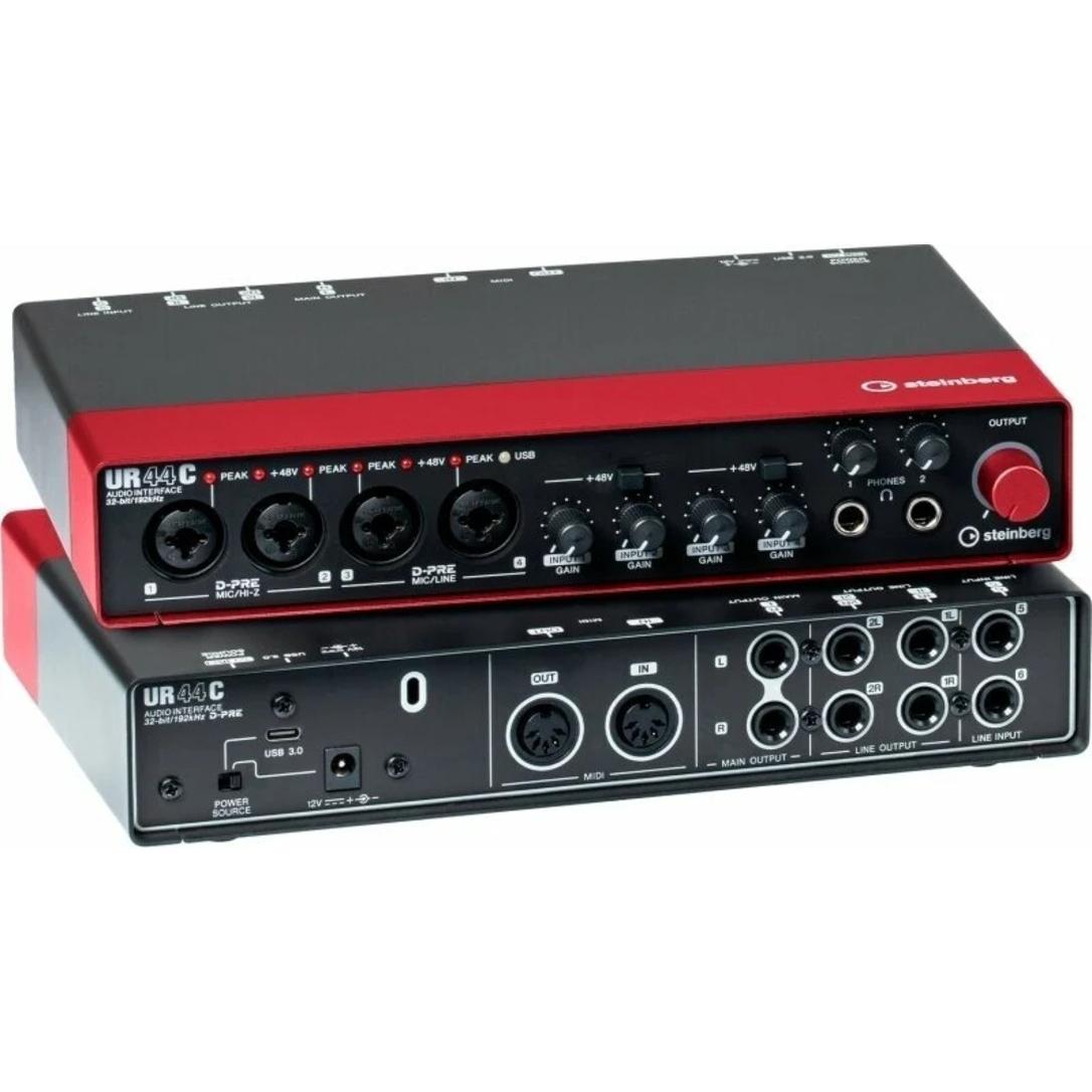 Steinberg UR44C – это профессиональный USB-аудиоинтерфейс, развивающий функционал звуковой карты UR44 и являющийся средней моделью в новой линейке «C». Устройство предлагает пользователям улучшенные технические характеристики, например, диапазон усиления и мощность выходов для наушников, конверторы, функционирующие в форматах до 32 бит/192 кГц, а также поддержку интерфейсов USB 3.0 и 3.1 для наиболее быстрого обмена данными с компьютером.